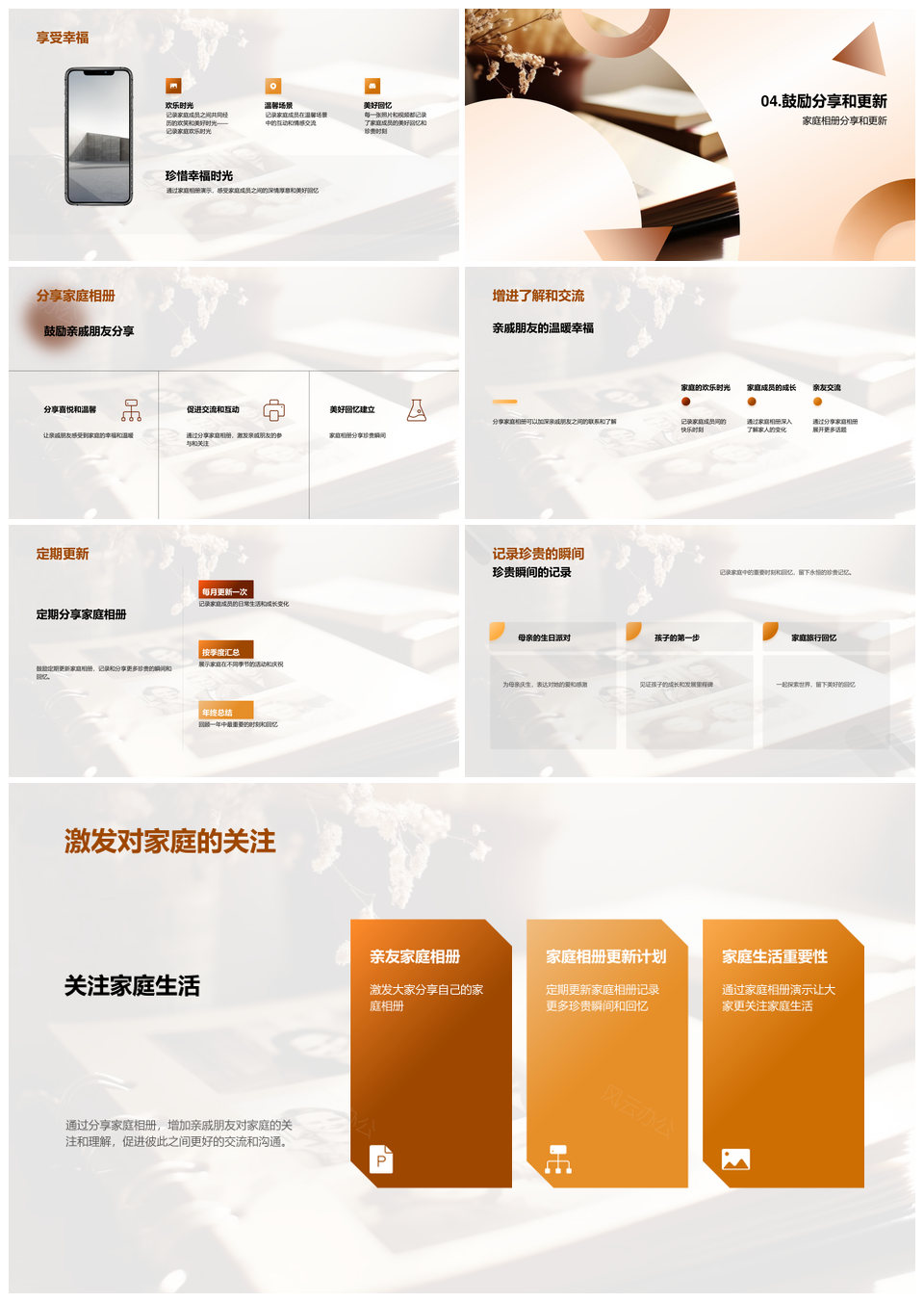 这是一张家庭相册分享美好回忆影像珍藏重要时刻PPT模板,包含家庭、相册、分享、美好、回忆、影像、珍藏、重要、时刻等主题内容,也可用作家庭相册分享美好回忆、家庭相册分享美好、家庭相册分享、相册分享美好回忆、分享美好回忆影像、美好回忆影像珍藏、影像珍藏重要时刻、家庭相册珍藏重要时刻、相册分享美好回忆影像、分享美好回忆影像珍藏、家庭相册分享回忆影像、美好回忆珍藏重要时刻、影像珍藏家庭重要时刻、相册珍藏美好回忆影像、分享珍藏家庭美好回忆等PPT场景使用。 风云办公提供的家庭相册分享美好回忆影像珍藏重要时刻PPT模板,下载格式为pptx,一共25页,作品中文字及图均可以修改和编辑,图片更改请在作品中右键图片并更换,文字修改请直接点击文字进行修改。