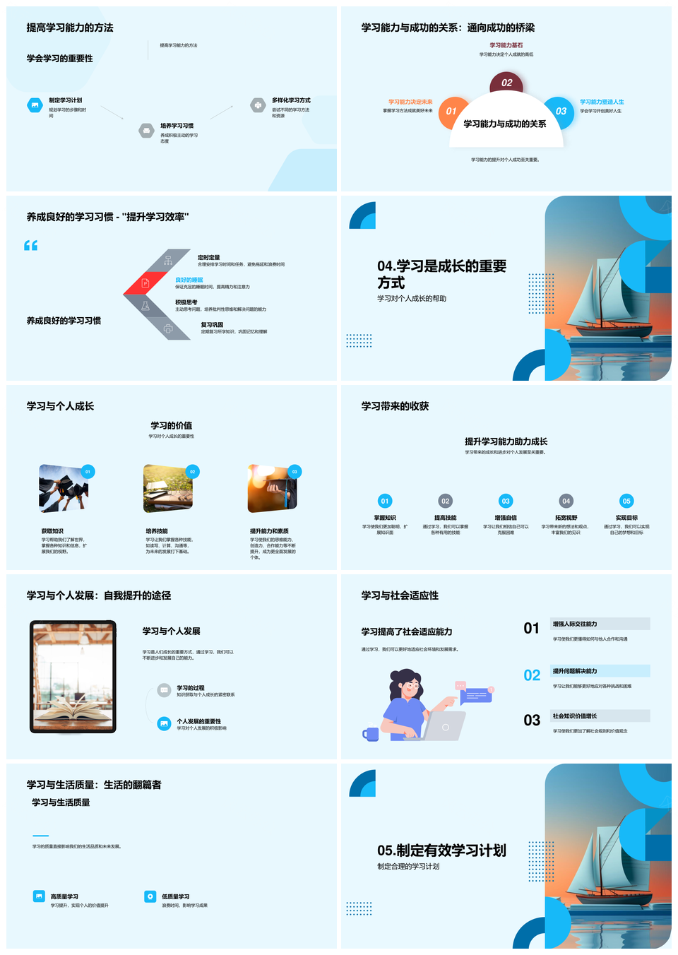 高效学习策略扬帆启航成长PPT模板