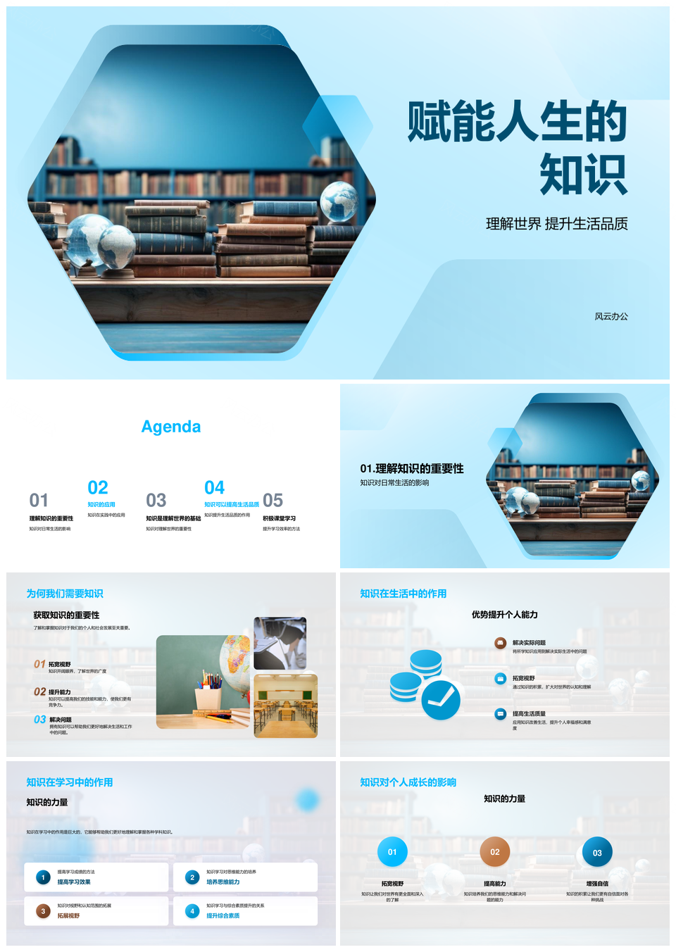 风云办公提供的知识赋能人生理解世界提升生活品质PPT模板,下载格式为pptx,一共25页,作品中文字及图均可以修改和编辑,图片更改请在作品中右键图片并更换,文字修改请直接点击文字进行修改。