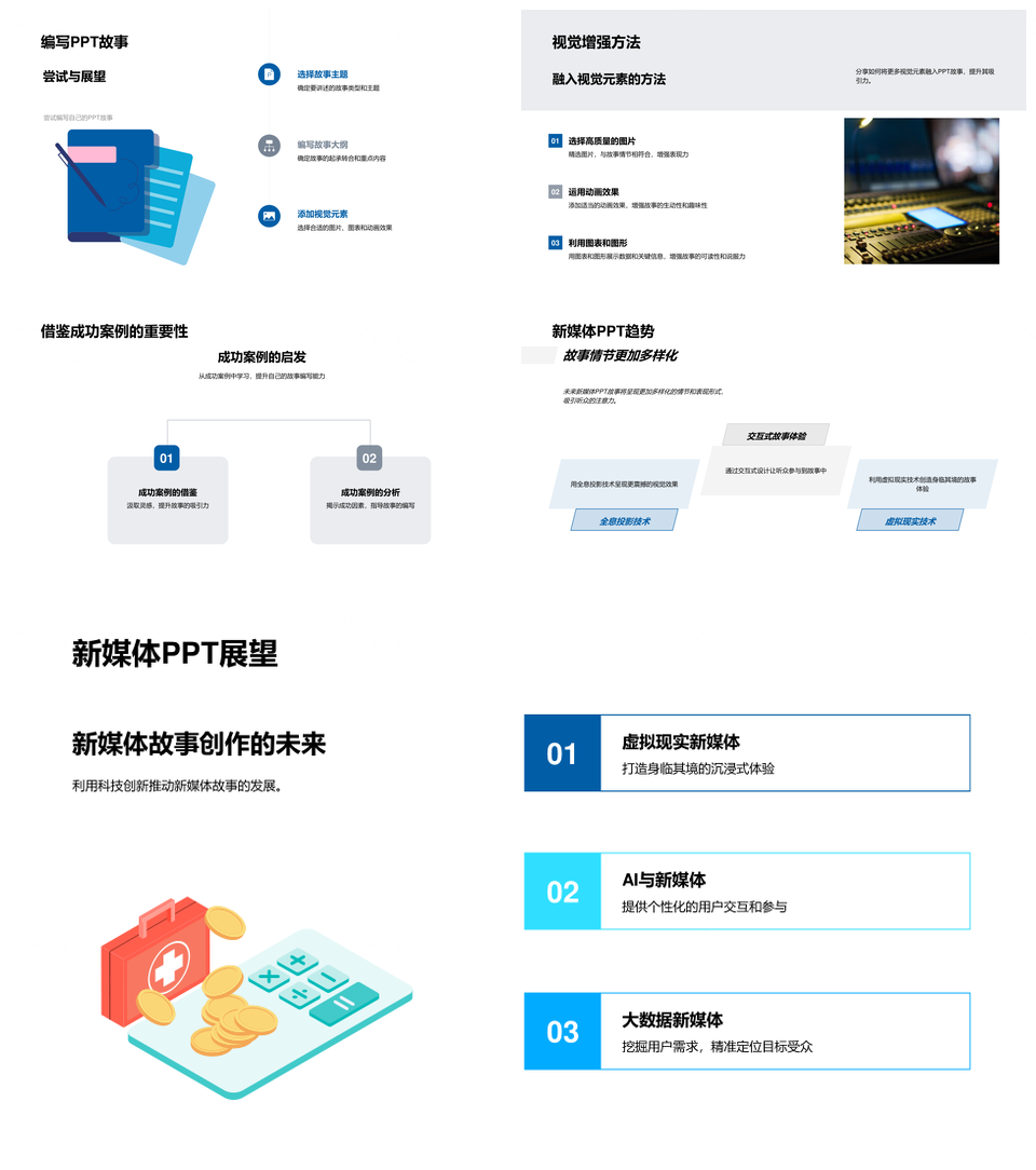 风云办公提供的PPT视觉叙事高效展示新媒体故事案例技巧,下载格式为pptx,一共33页,作品中文字及图均可以修改和编辑,图片更改请在作品中右键图片并更换,文字修改请直接点击文字进行修改。