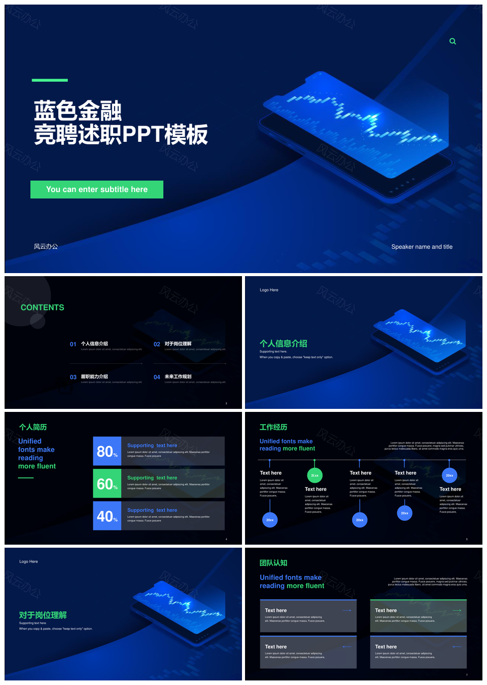 风云办公提供的蓝色商务经济金融股价述职竞聘PPT模板,下载格式为pptx,一共20页,作品中文字及图均可以修改和编辑,图片更改请在作品中右键图片并更换,文字修改请直接点击文字进行修改。