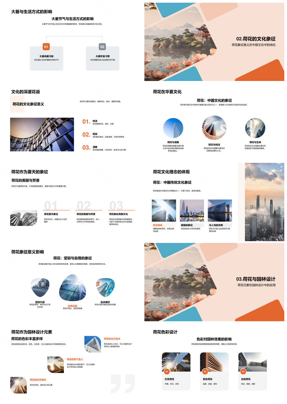 风云办公提供的大暑荷花园林传统文化象征艺术PPT模板,下载格式为pptx,一共29页,作品中文字及图均可以修改和编辑,图片更改请在作品中右键图片并更换,文字修改请直接点击文字进行修改。