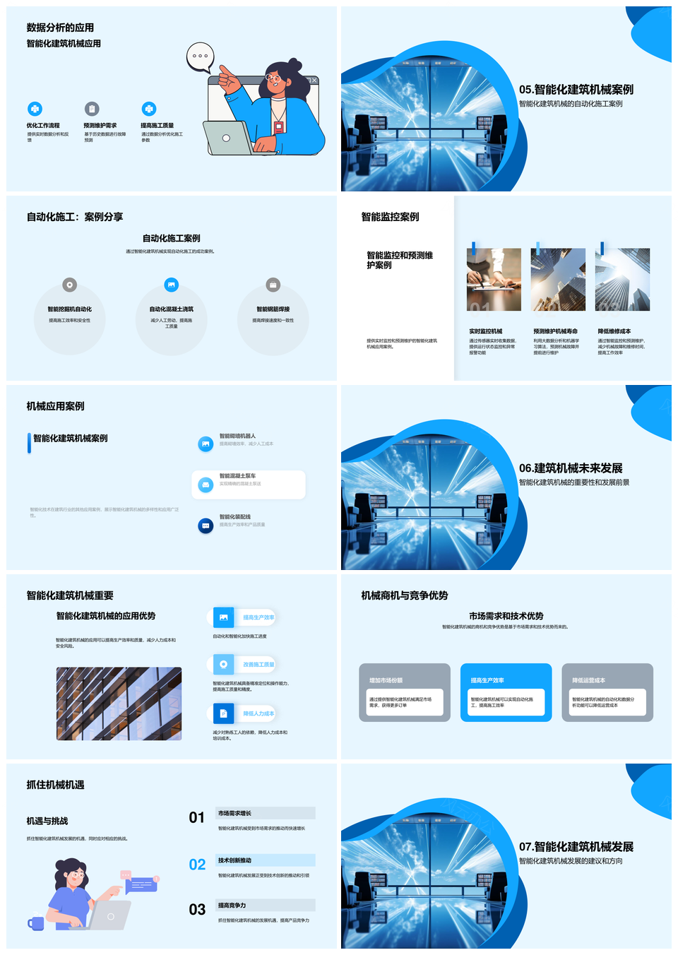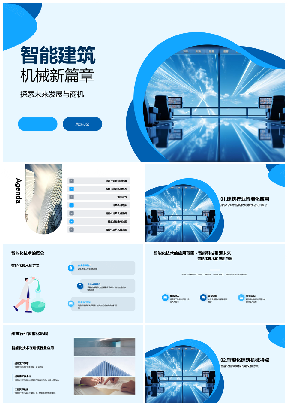 风云办公提供的智能建筑机械革新建筑行业未来PPT模板,下载格式为pptx,一共31页,作品中文字及图均可以修改和编辑,图片更改请在作品中右键图片并更换,文字修改请直接点击文字进行修改。