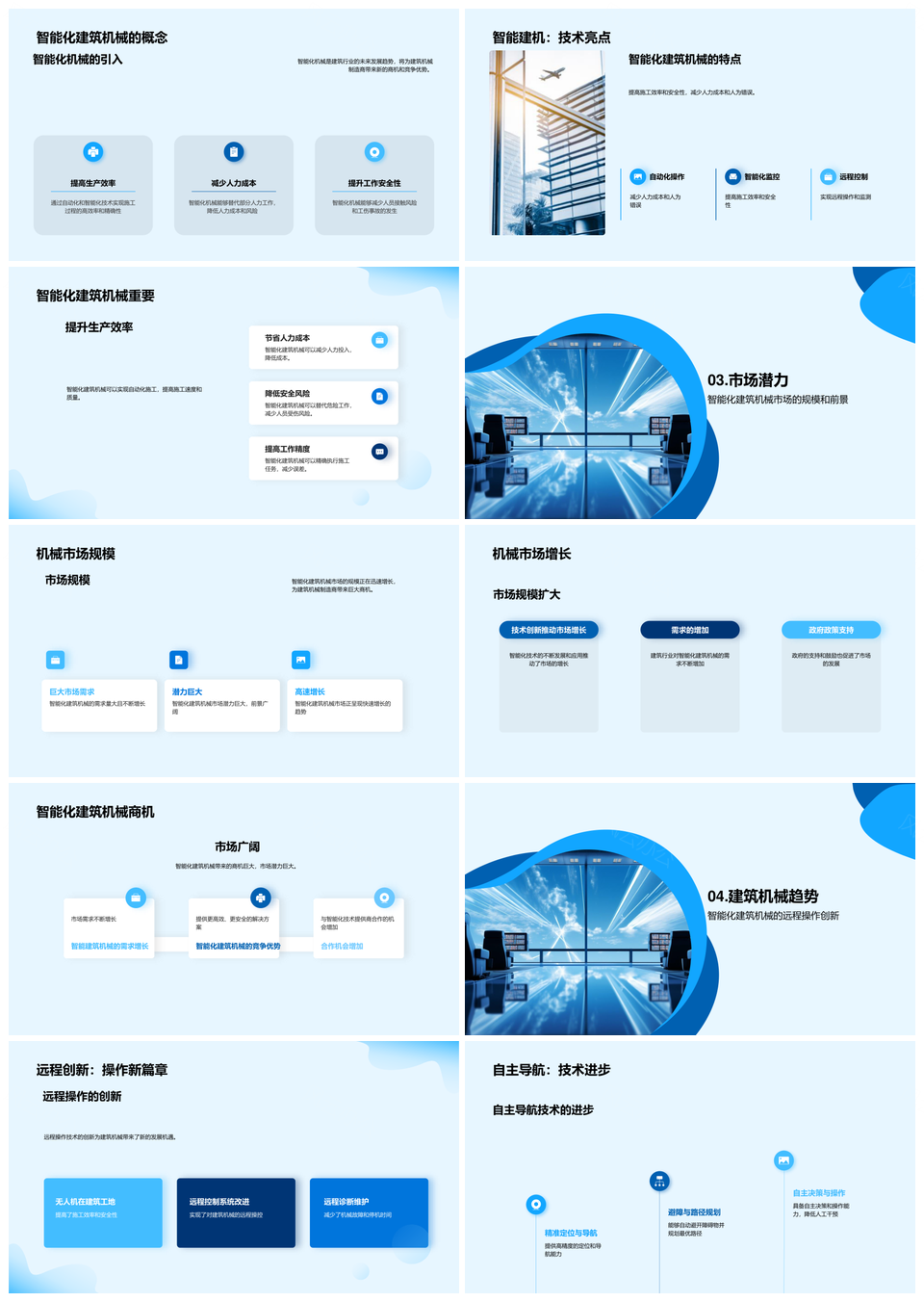 这是一张智能建筑机械革新建筑行业未来PPT模板,包含智能建筑、机械、革新、建筑行业、未来等主题内容,也可用作智能建筑机械革新、建筑机械革新建筑行业、机械革新建筑行业未来、智能建筑机械、建筑机械革新、机械革新建筑行业、革新建筑行业未来、智能建筑革新、智能建筑行业未来、智能建筑、建筑机械、机械革新、革新建筑行业、建筑行业未来、智能机械等PPT场景使用。