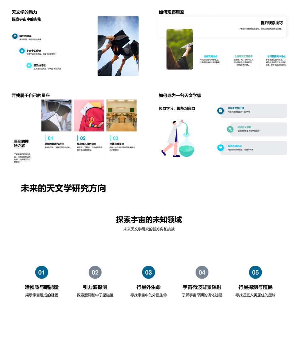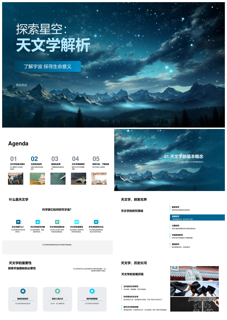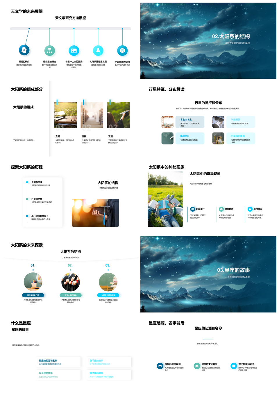 这是一张天文探索宇宙银河系太阳系行星星座望远镜解析PPT模板,包含天文探索、宇宙、银河系、太阳系、行星、星座、望远镜、解析等主题内容,也可用作天文探索宇宙银河系、宇宙银河系太阳系行星、银河系太阳系行星望远镜、太阳系行星星座望远镜、行星星座望远镜解析、天文探索太阳系行星、宇宙银河系望远镜解析、银河系行星望远镜解析、太阳系星座望远镜解析、天文探索银河系行星、宇宙太阳系行星望远镜、银河系星座望远镜解析、太阳系行星望远镜、天文望远镜解析、银河系行星望远镜等PPT场景使用。 风云办公提供的天文探索宇宙银河系太阳系行星星座望远镜解析PPT模板,下载格式为pptx,一共33页,作品中文字及图均可以修改和编辑,图片更改请在作品中右键图片并更换,文字修改请直接点击文字进行修改。