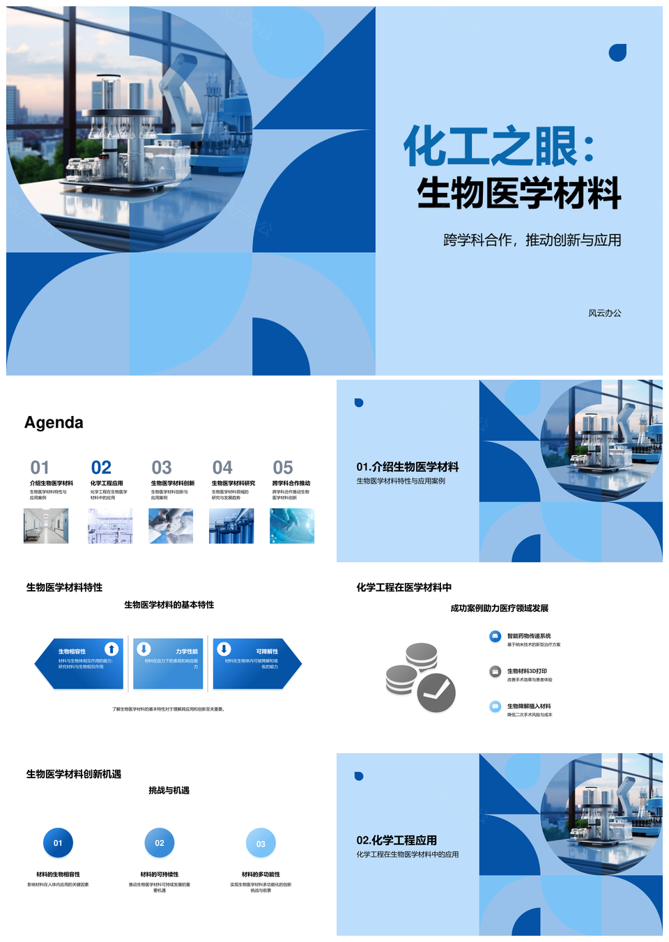 风云办公提供的化学工程创新生物医学材料应用探索PPT模板,下载格式为pptx,一共23页,作品中文字及图均可以修改和编辑,图片更改请在作品中右键图片并更换,文字修改请直接点击文字进行修改。