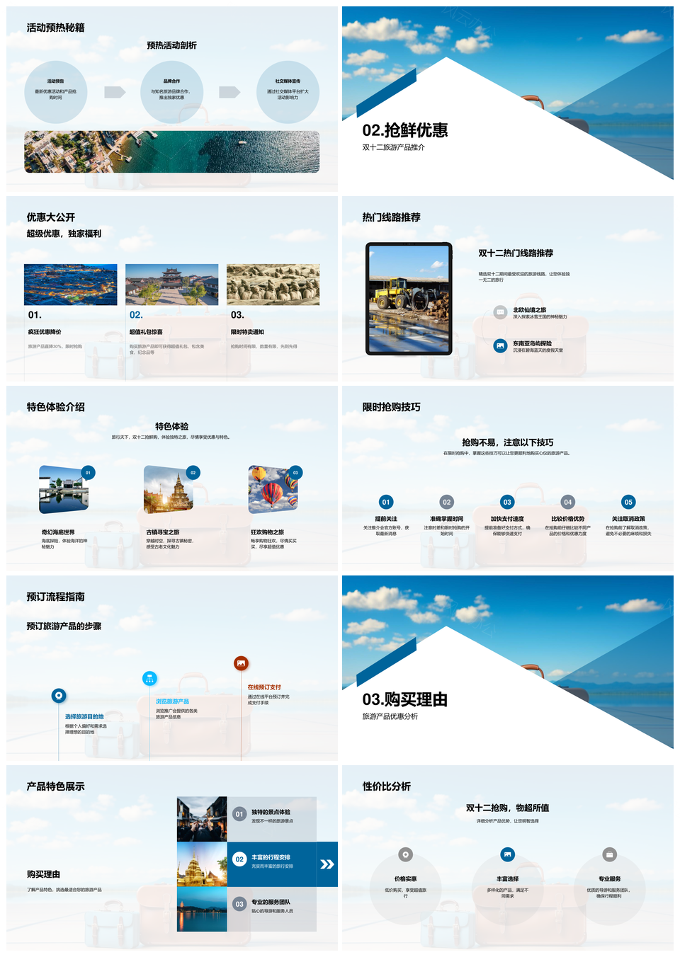这是一张双十二旅行游购优惠享PPT模板,包含双十二、旅行、游购、优惠等主题内容,也可用作双十二旅行游购优惠、双十二旅行游购、双十二旅行优惠、双十二游购优惠、旅行游购优惠、双十二优惠游购、双十二优惠旅行、优惠双十二旅行、优惠双十二游购、双十二旅行、双十二游购、双十二优惠、旅行游购、旅行优惠、游购优惠等PPT场景使用。 风云办公提供的双十二旅行游购优惠享PPT模板,下载格式为pptx,一共33页,作品中文字及图均可以修改和编辑,图片更改请在作品中右键图片并更换,文字修改请直接点击文字进行修改。