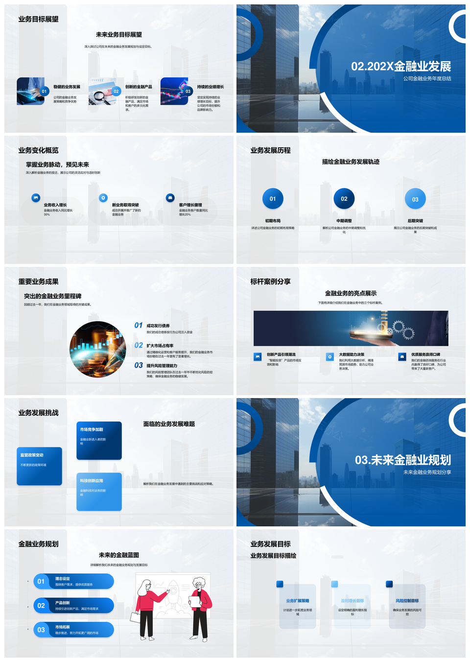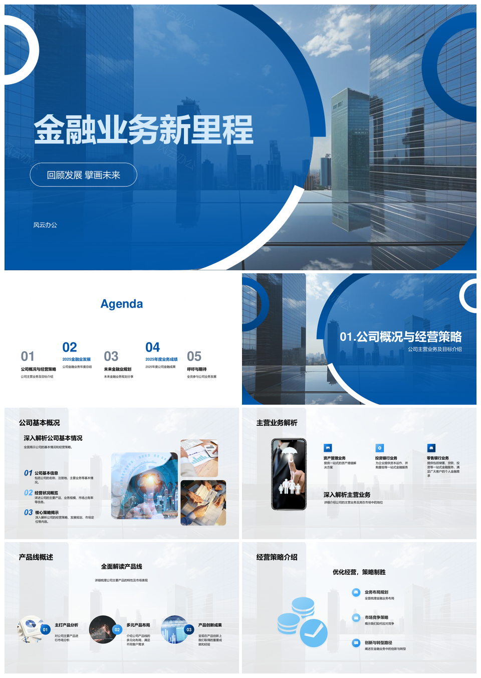风云办公提供的公司202X金融业务摩天大楼新里程PPT模板,下载格式为pptx,一共33页,作品中文字及图均可以修改和编辑,图片更改请在作品中右键图片并更换,文字修改请直接点击文字进行修改。
