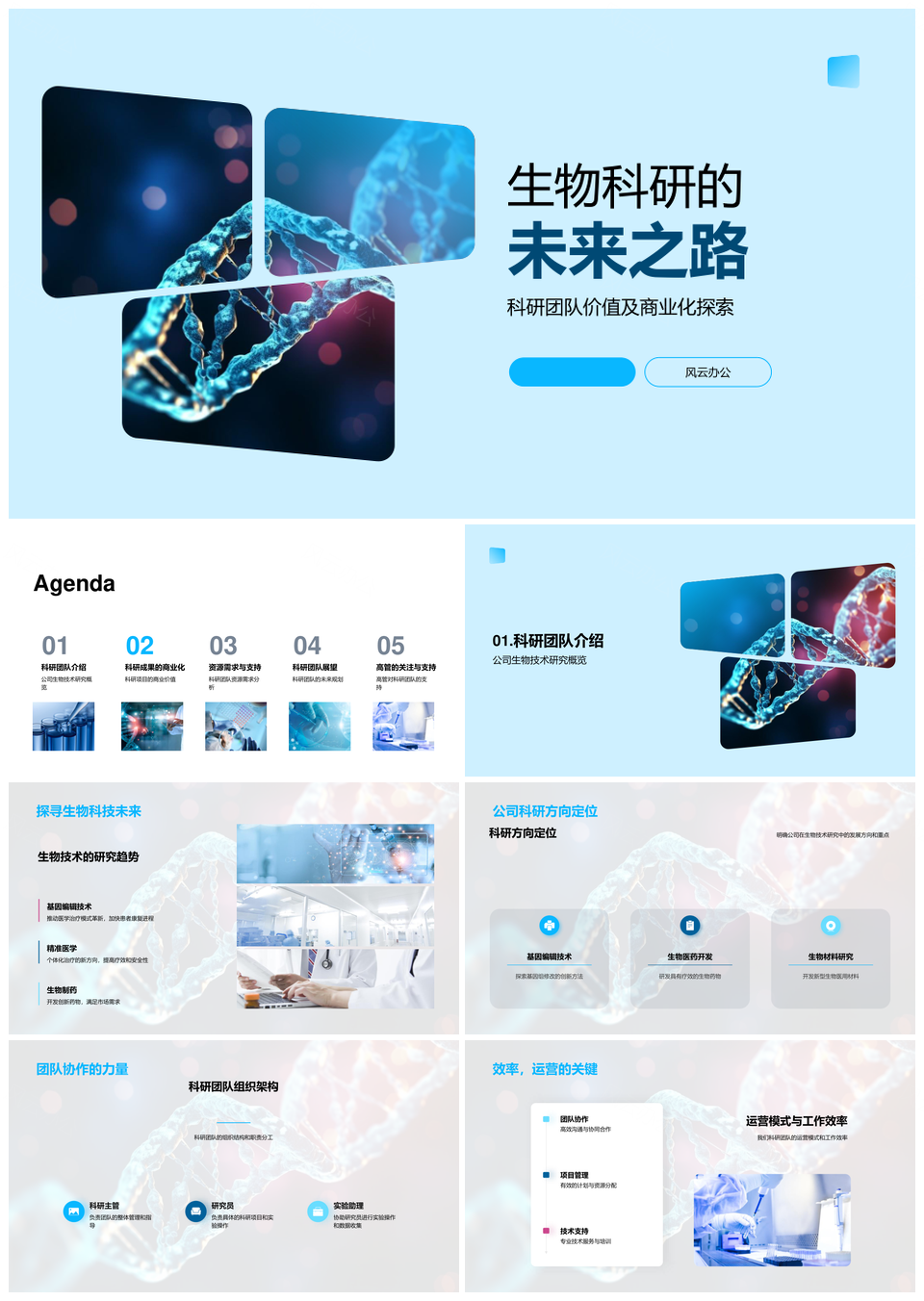 风云办公提供的生物科研团队商业化资源与市场前景PPT模板,下载格式为pptx,一共28页,作品中文字及图均可以修改和编辑,图片更改请在作品中右键图片并更换,文字修改请直接点击文字进行修改。