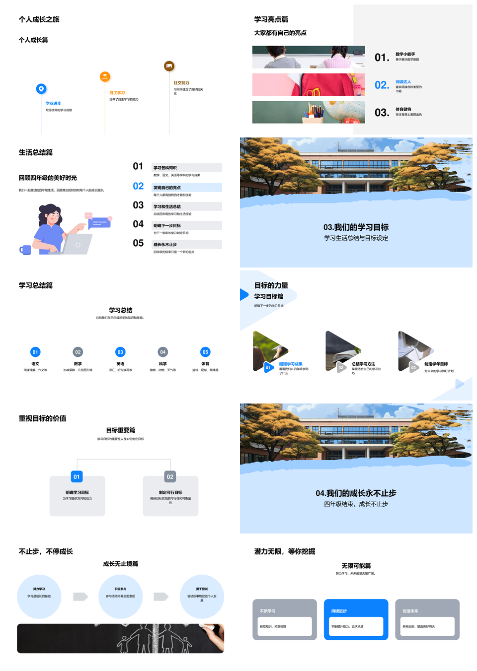 四年级学生成长学习总结与健康教育目标PPT模板推荐