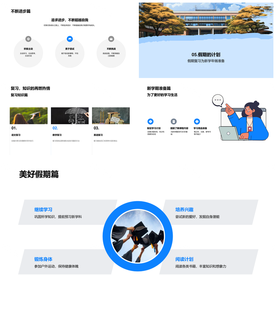 这是一张四年级学生成长学习总结与健康教育目标PPT模板,包含四年级学生、成长学习总结、健康教育目标等主题内容,也可用作四年级学生成长学习总结、四年级学生成长学习、学生成长学习总结、成长学习总结健康教育、学习总结健康教育目标、四年级健康教育目标、学生成长学习、成长学习总结、学习健康教育目标、四年级学生成长、学生健康教育目标、成长学习健康、学习总结教育、四年级学生教育、健康教育目标等PPT场景使用。 风云办公提供的四年级学生成长学习总结与健康教育目标PPT模板,下载格式为pptx,一共23页,作品中文字及图均可以修改和编辑,图片更改请在作品中右键图片并更换,文字修改请直接点击文字进行修改。