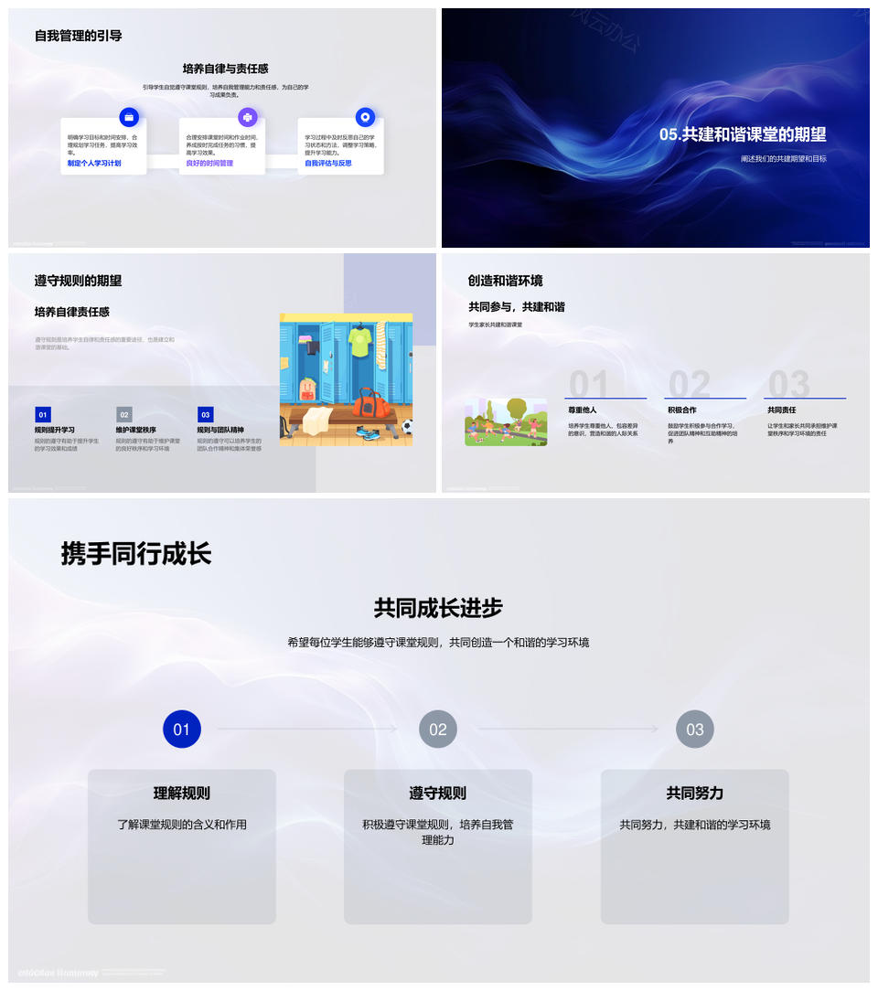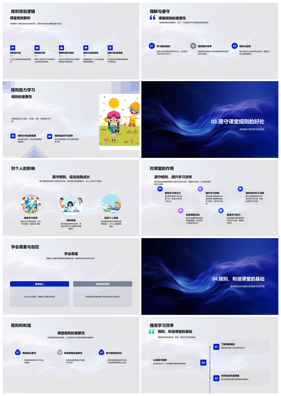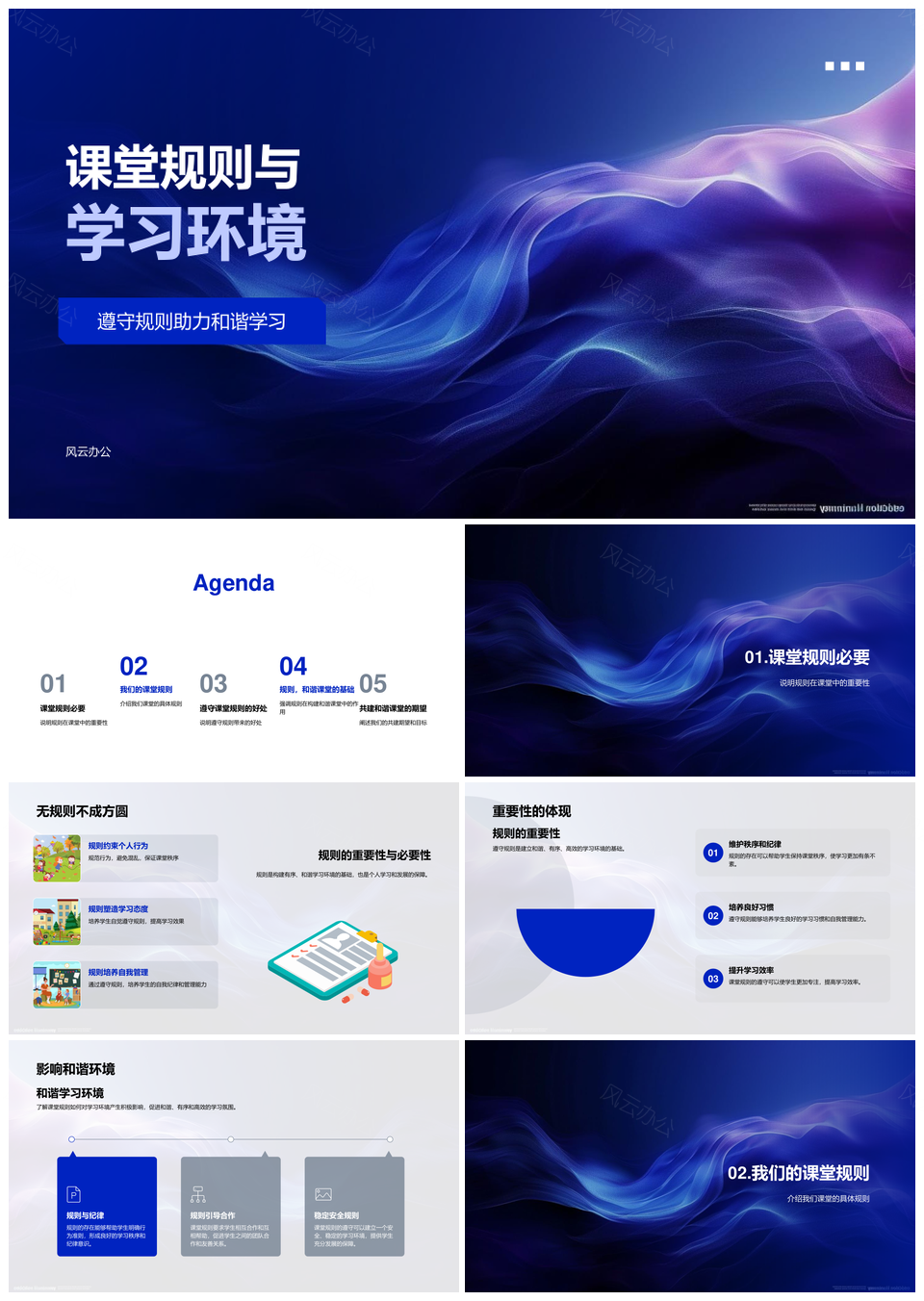 风云办公提供的课堂规则和谐学习环境教育培训家长会PPT模板,下载格式为pptx,一共23页,作品中文字及图均可以修改和编辑,图片更改请在作品中右键图片并更换,文字修改请直接点击文字进行修改。