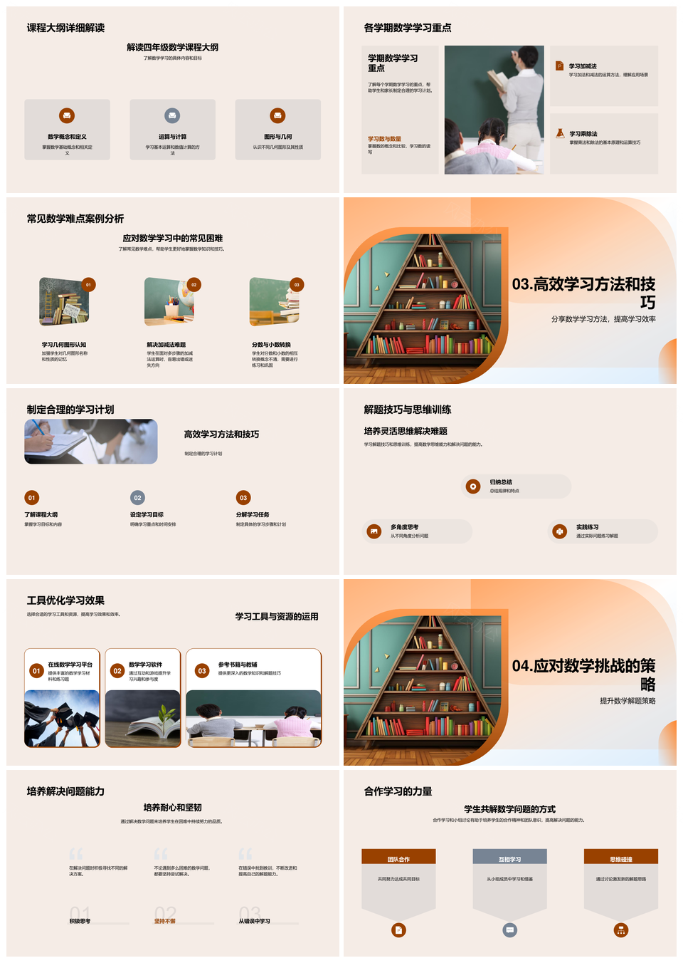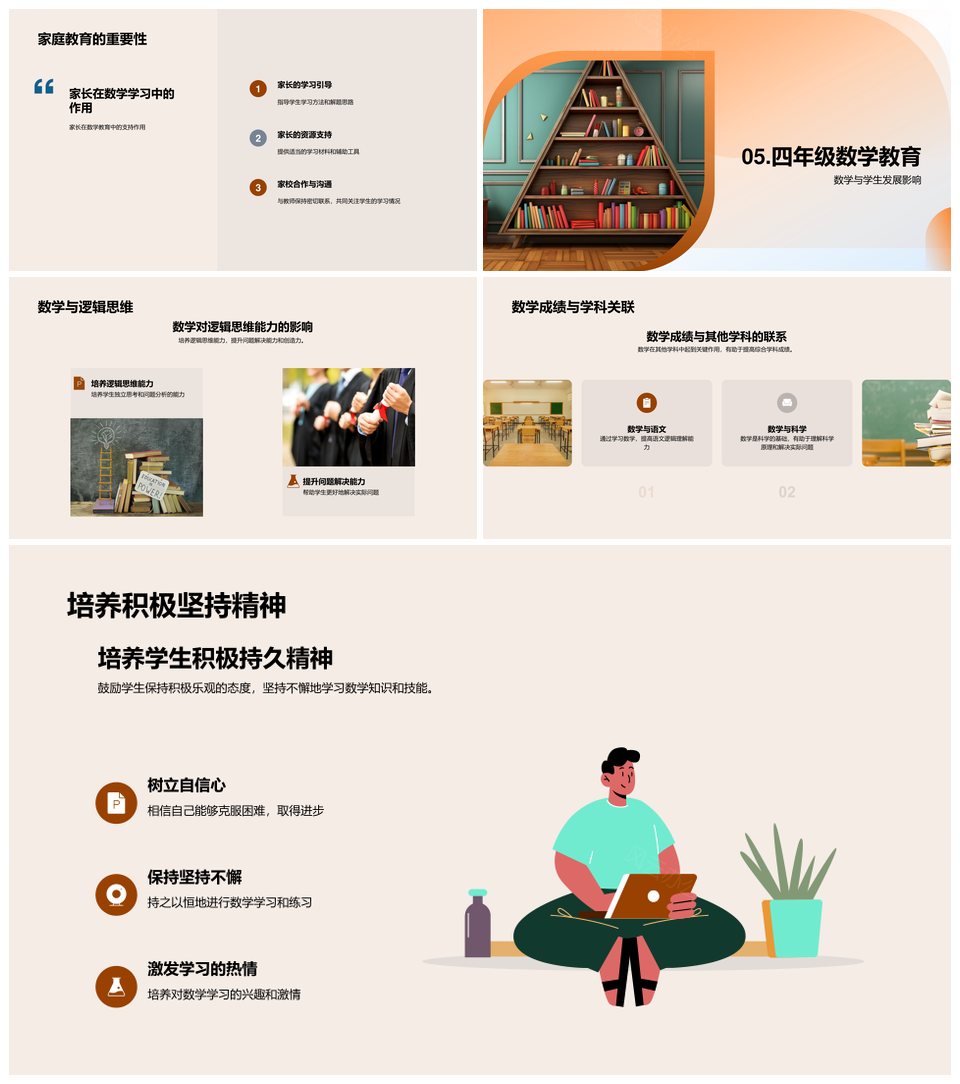 四年级数学重难点解题思维训练家校合作PPT模板推荐