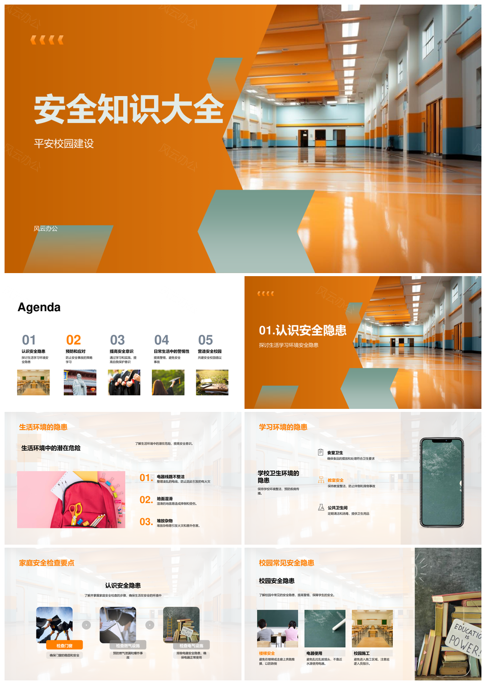 校园安全教育防范火灾中毒交通电气建筑隐患PPT模板