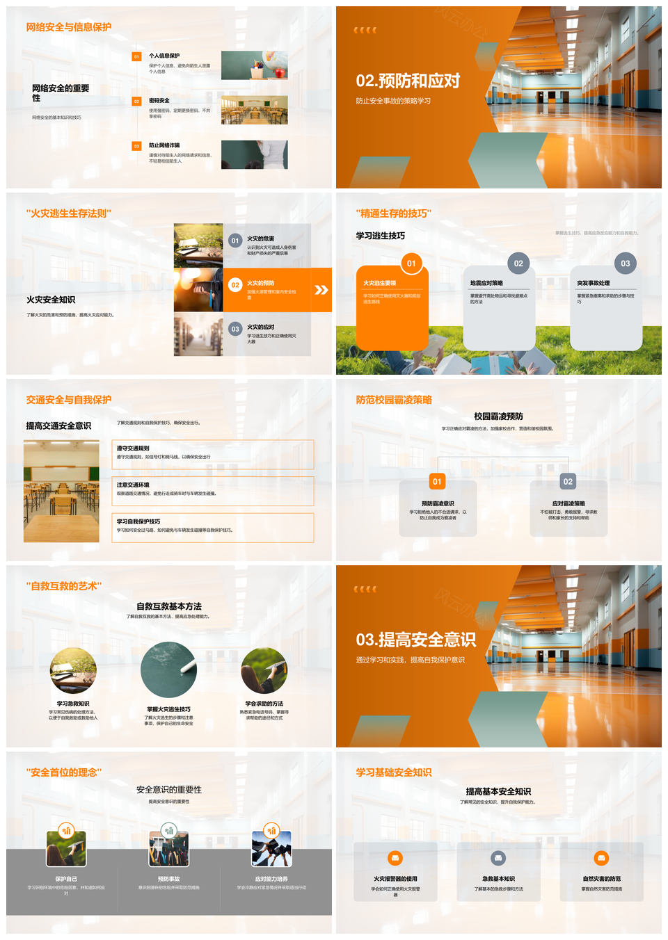 校园家庭网络交通火灾安全防范自救知识PPT模板