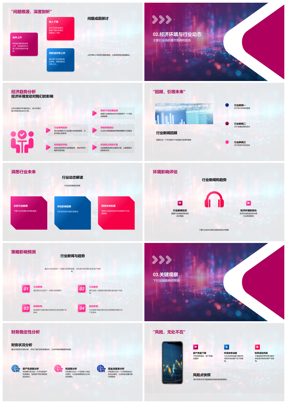 银行财务月度汇报问题策略调整行业趋势风险分析PPT模板推荐