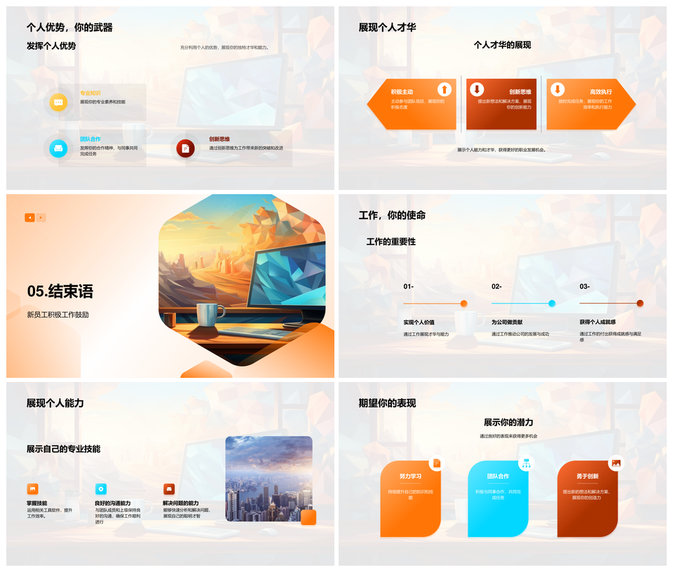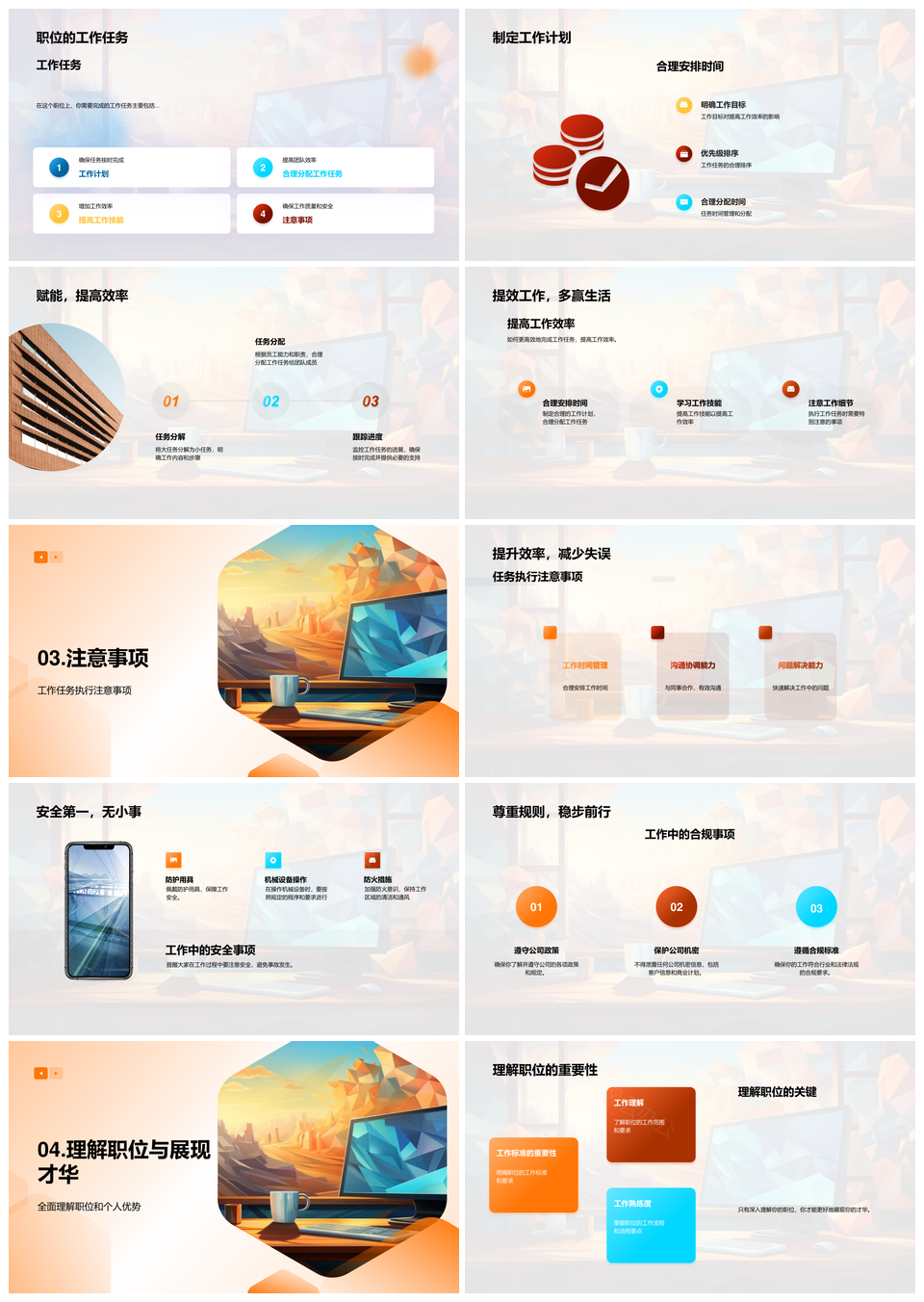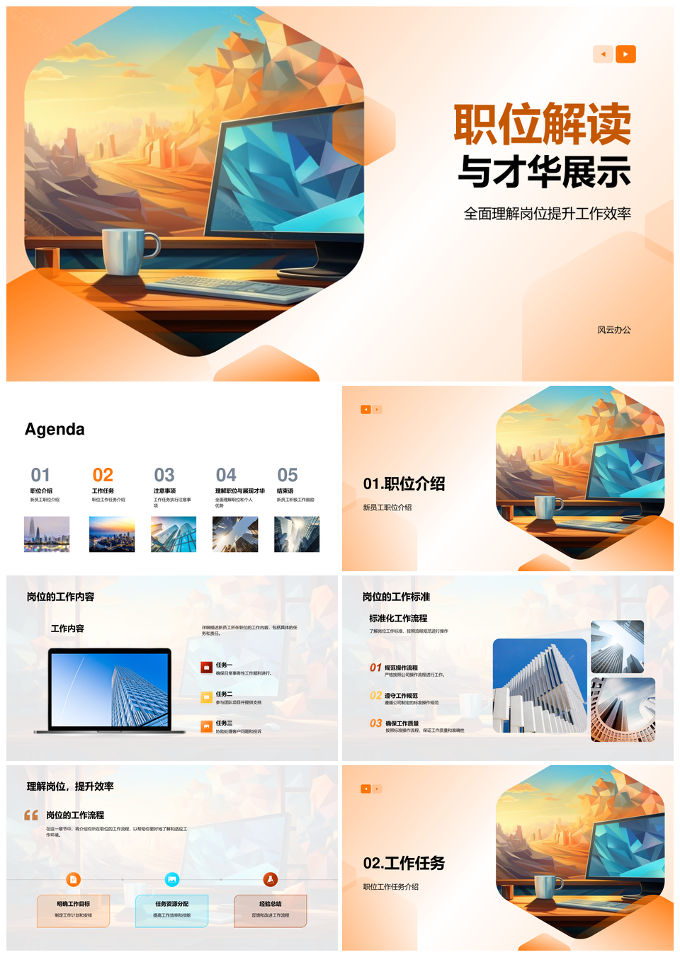 风云办公提供的新员工职位解析与工作效率培训PPT模板,下载格式为pptx,一共24页,作品中文字及图均可以修改和编辑,图片更改请在作品中右键图片并更换,文字修改请直接点击文字进行修改。