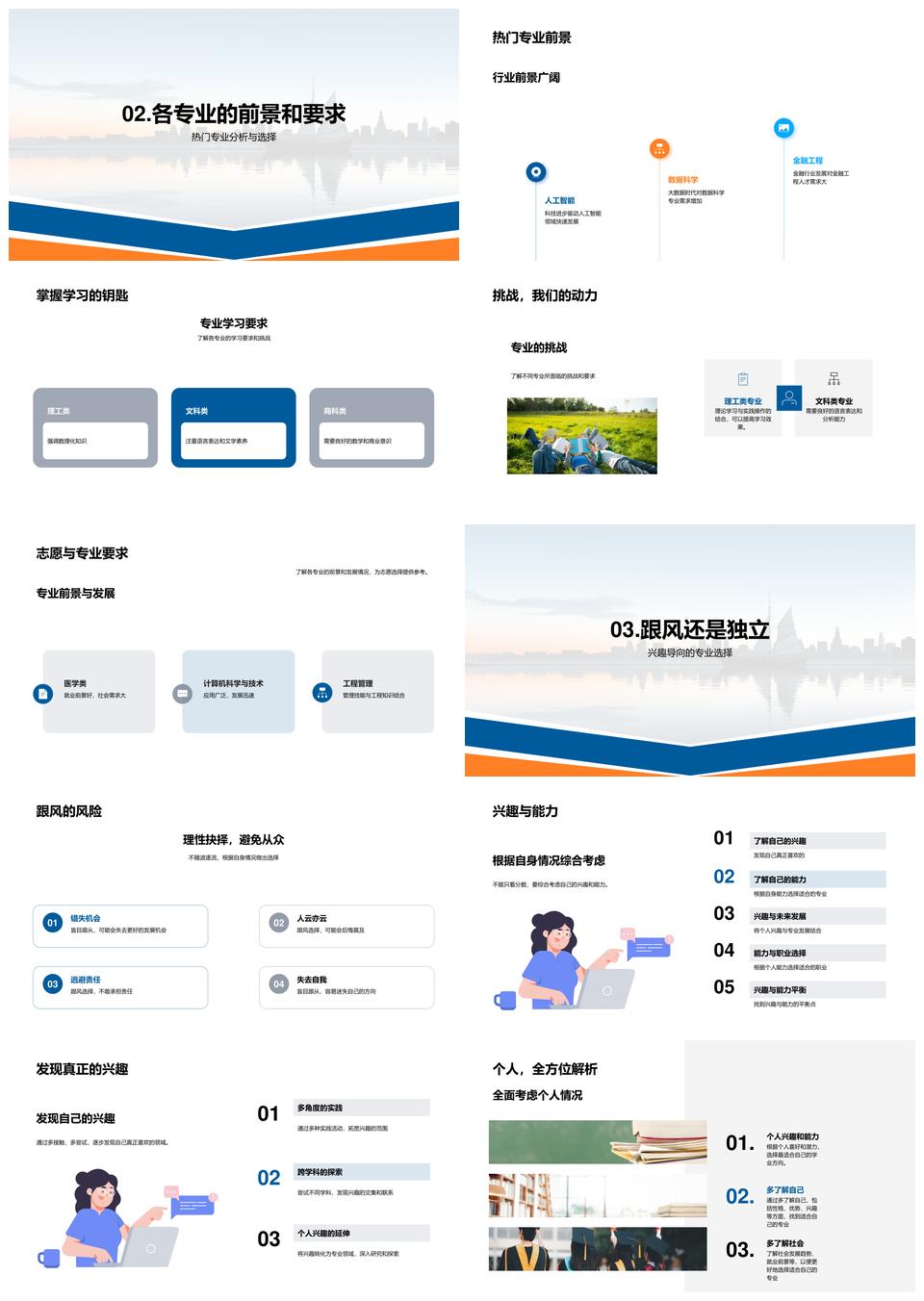 风云办公提供的高考志愿导航未来职业兴趣避跟风PPT模板,下载格式为pptx,一共28页,作品中文字及图均可以修改和编辑,图片更改请在作品中右键图片并更换,文字修改请直接点击文字进行修改。