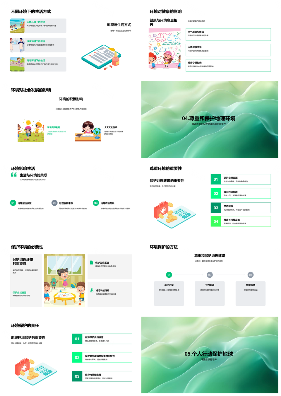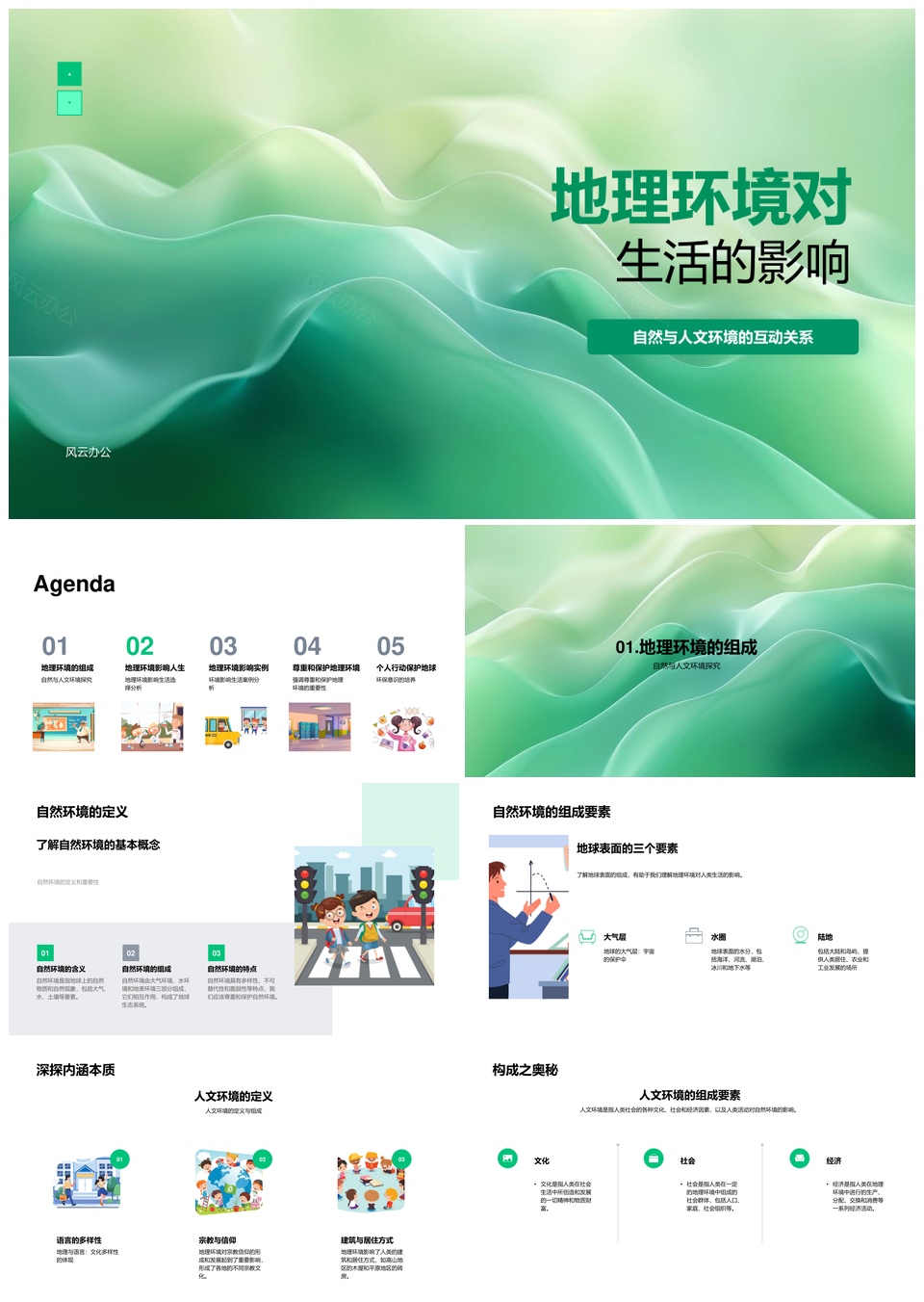 风云办公提供的地理环境影响衣食住行与环保选择PPT模板,下载格式为pptx,一共33页,作品中文字及图均可以修改和编辑,图片更改请在作品中右键图片并更换,文字修改请直接点击文字进行修改。