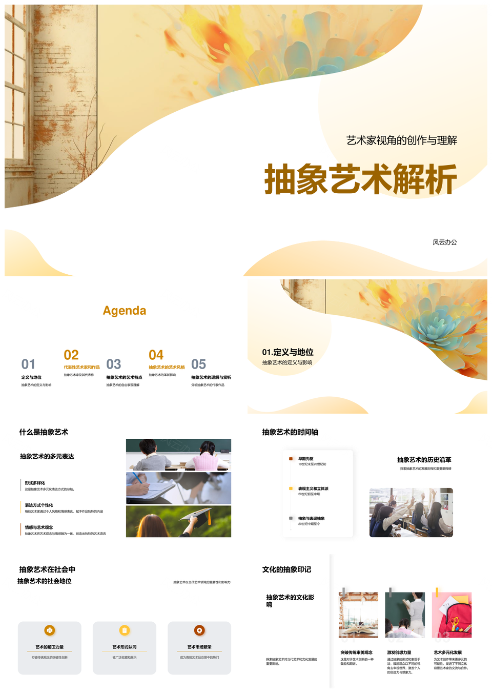 艺术主题表达要素颜色线条形状画笔解析PPT模板