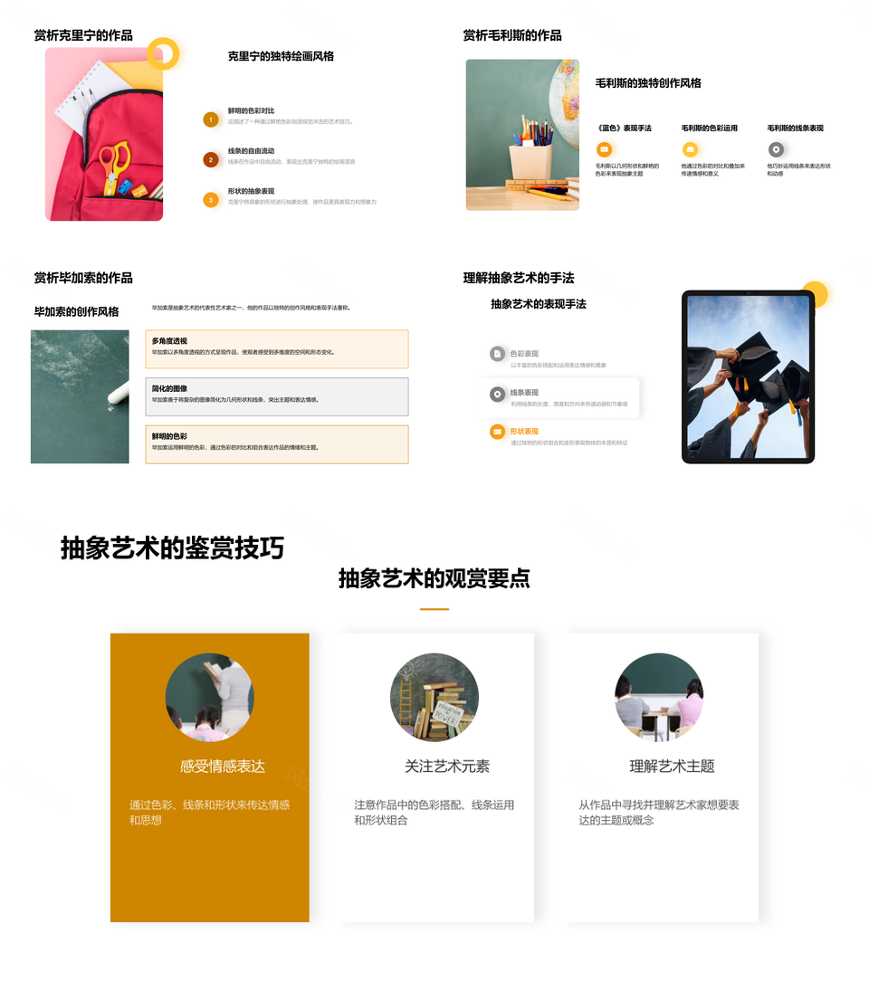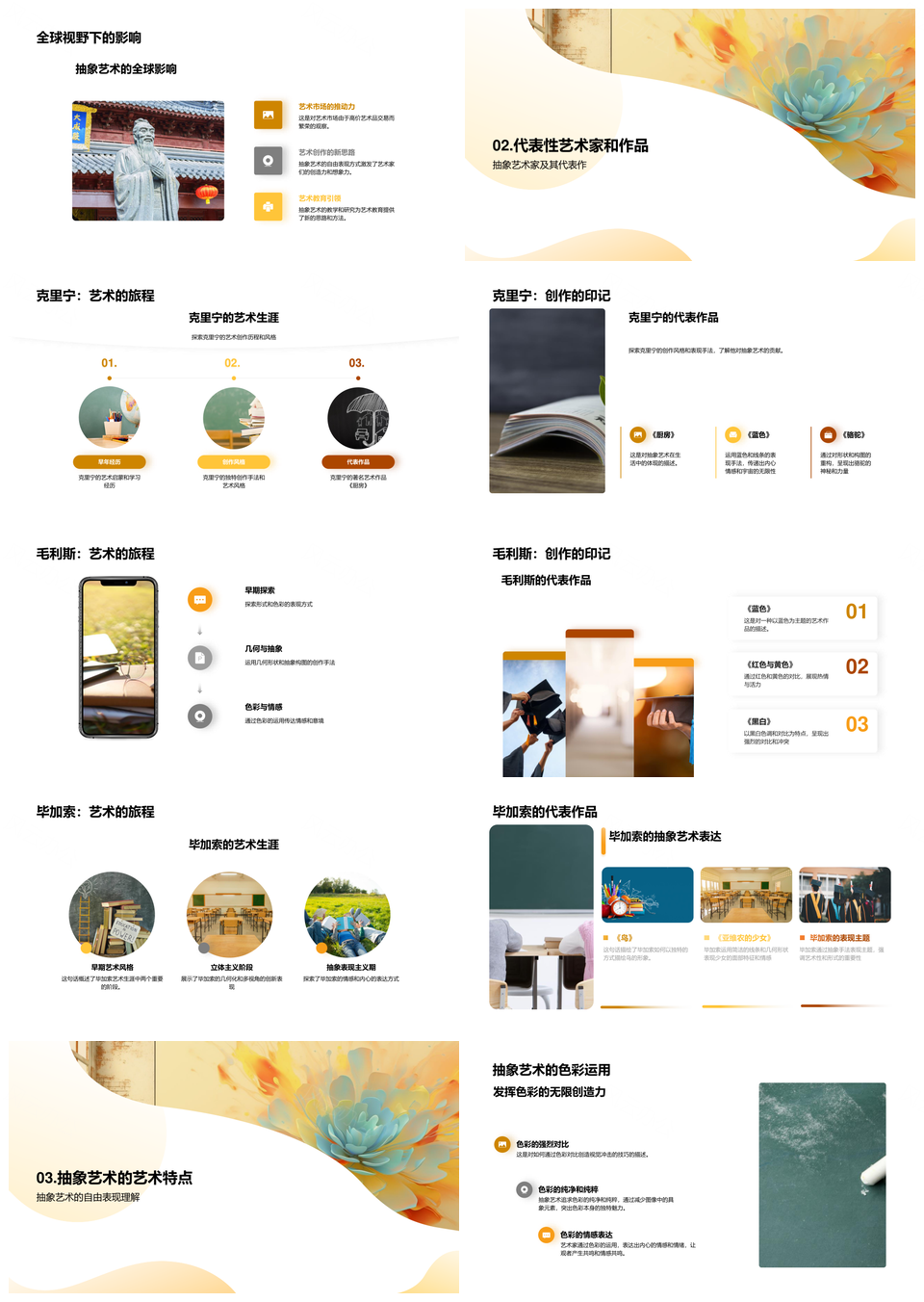 克里宁毛利斯毕加索抽象艺术形色线质解析PPT模板推荐