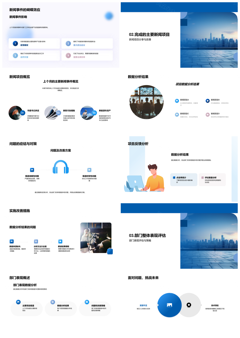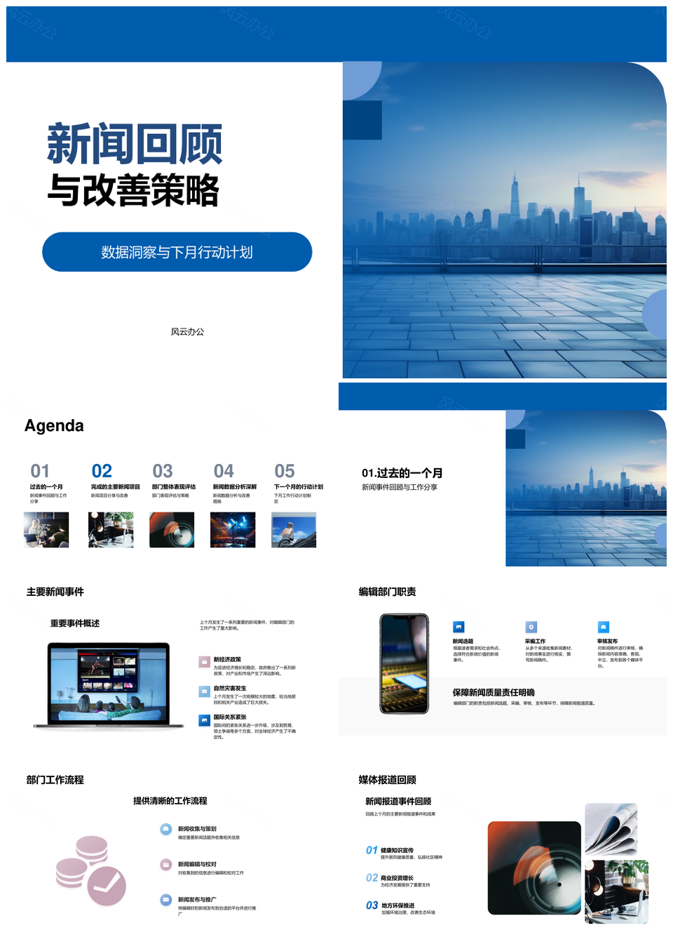 风云办公提供的新闻回顾数据洞察传媒改善策略PPT模板,下载格式为pptx,一共33页,作品中文字及图均可以修改和编辑,图片更改请在作品中右键图片并更换,文字修改请直接点击文字进行修改。
