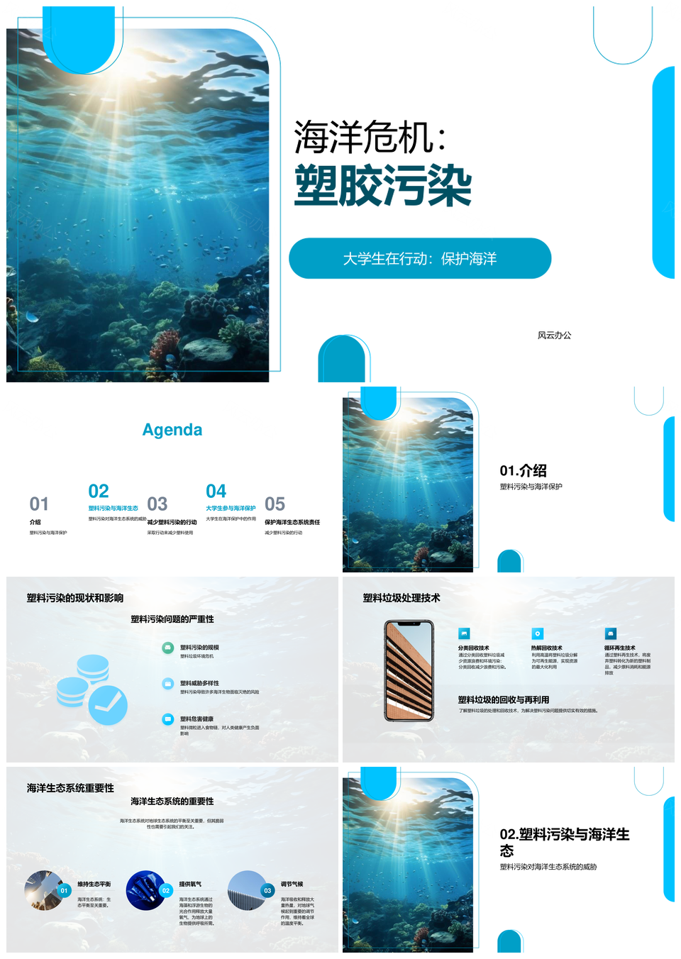 风云办公提供的大学生环保社团护海治塑行动PPT模板,下载格式为pptx,一共25页,作品中文字及图均可以修改和编辑,图片更改请在作品中右键图片并更换,文字修改请直接点击文字进行修改。