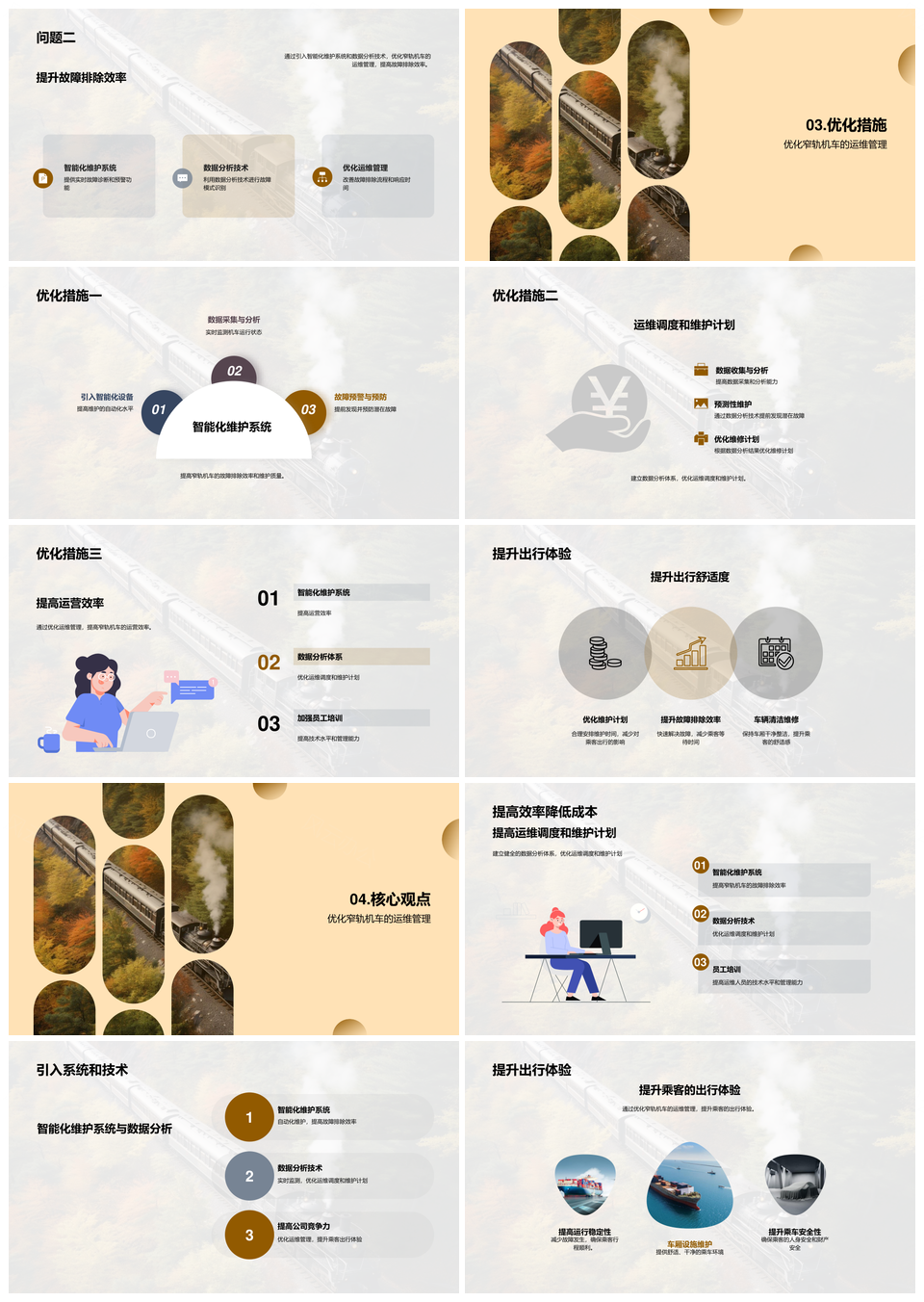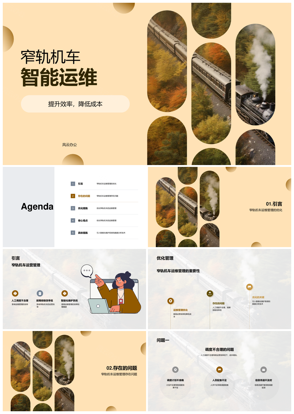 风云办公提供的窄轨机车智能运维系统优化维护管理PPT模板,下载格式为pptx,一共23页,作品中文字及图均可以修改和编辑,图片更改请在作品中右键图片并更换,文字修改请直接点击文字进行修改。