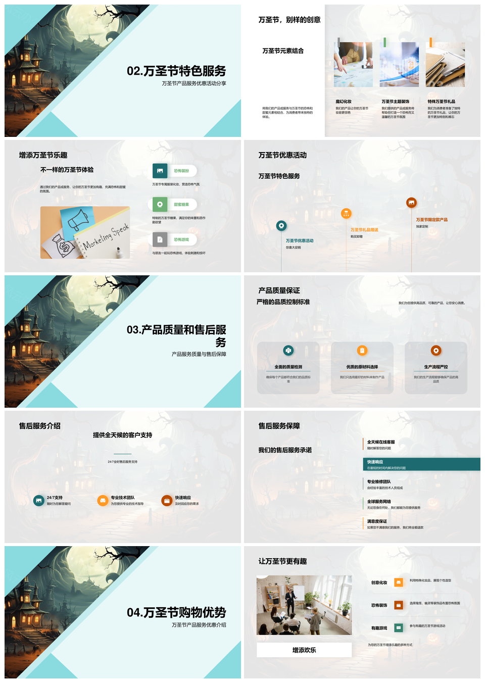 这是一张万圣节狂欢盛宴特色服务特惠质保南瓜灯PPT模板,包含万圣节、狂欢、盛宴、特色、服务、特惠、质保、南瓜灯等主题内容,也可用作万圣节狂欢盛宴特色、狂欢盛宴特色服务、盛宴特色服务特惠、特色服务特惠质保、服务特惠质保南瓜灯、万圣节狂欢盛宴、狂欢盛宴特色、盛宴特色服务、特色服务特惠、服务特惠质保、特惠质保南瓜灯、万圣节狂欢、狂欢盛宴、盛宴特色、特色服务等PPT场景使用。 风云办公提供的万圣节狂欢盛宴特色服务特惠质保南瓜灯PPT模板,下载格式为pptx,一共24页,作品中文字及图均可以修改和编辑,图片更改请在作品中右键图片并更换,文字修改请直接点击文字进行修改。