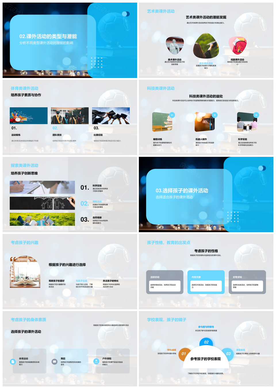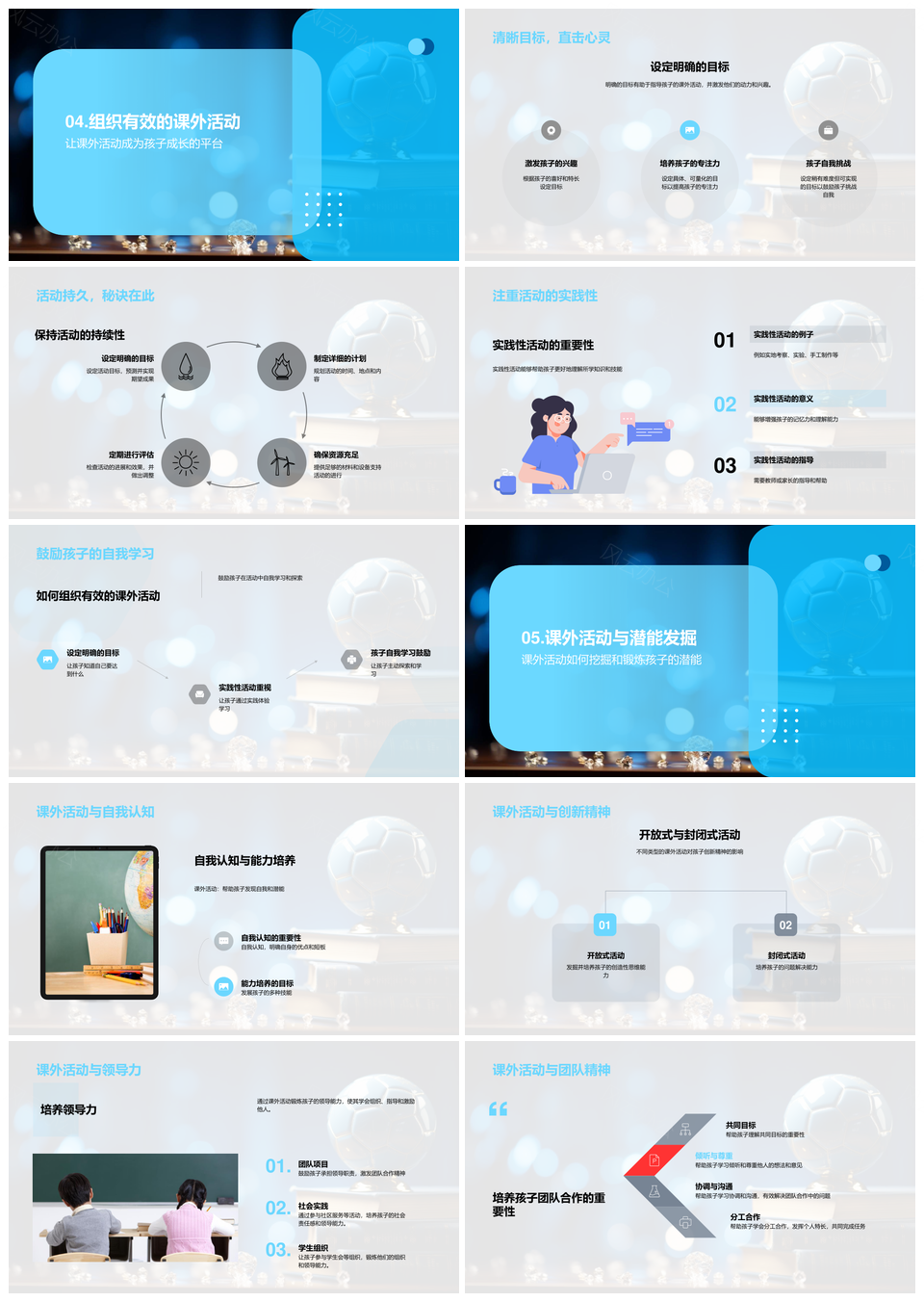 风云办公提供的课外活动挖掘学术艺体科潜能促发展PPT模板,下载格式为pptx,一共28页,作品中文字及图均可以修改和编辑,图片更改请在作品中右键图片并更换,文字修改请直接点击文字进行修改。