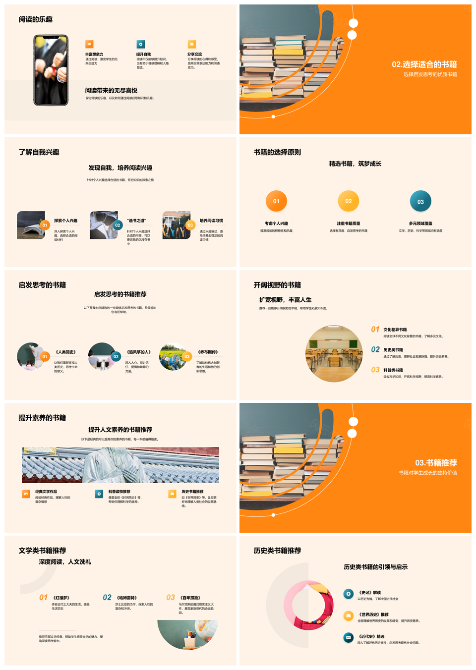 风云办公提供的中学生阅读塑造人格助力成长优选书单PPT模板,下载格式为pptx,一共33页,作品中文字及图均可以修改和编辑,图片更改请在作品中右键图片并更换,文字修改请直接点击文字进行修改。