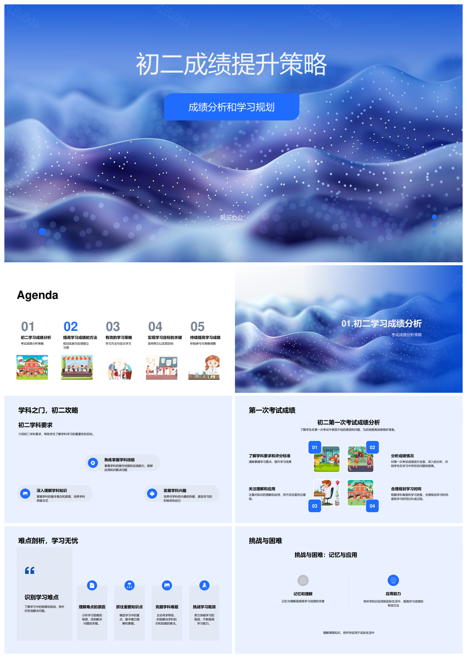 初二提升攻略分析规划学科难点理解应用时间资源PPT模板推荐