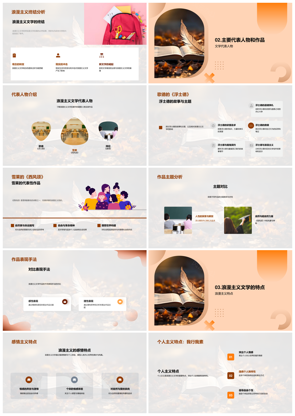 浪漫主义文学历史主题特征及影响解析PPT模板