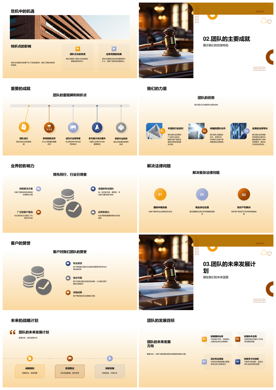 风云办公提供的法律顾问团队历程成就与未来规划PPT模板,下载格式为pptx,一共33页,作品中文字及图均可以修改和编辑,图片更改请在作品中右键图片并更换,文字修改请直接点击文字进行修改。