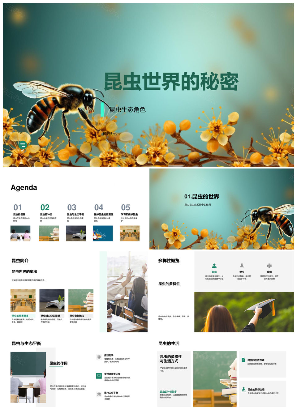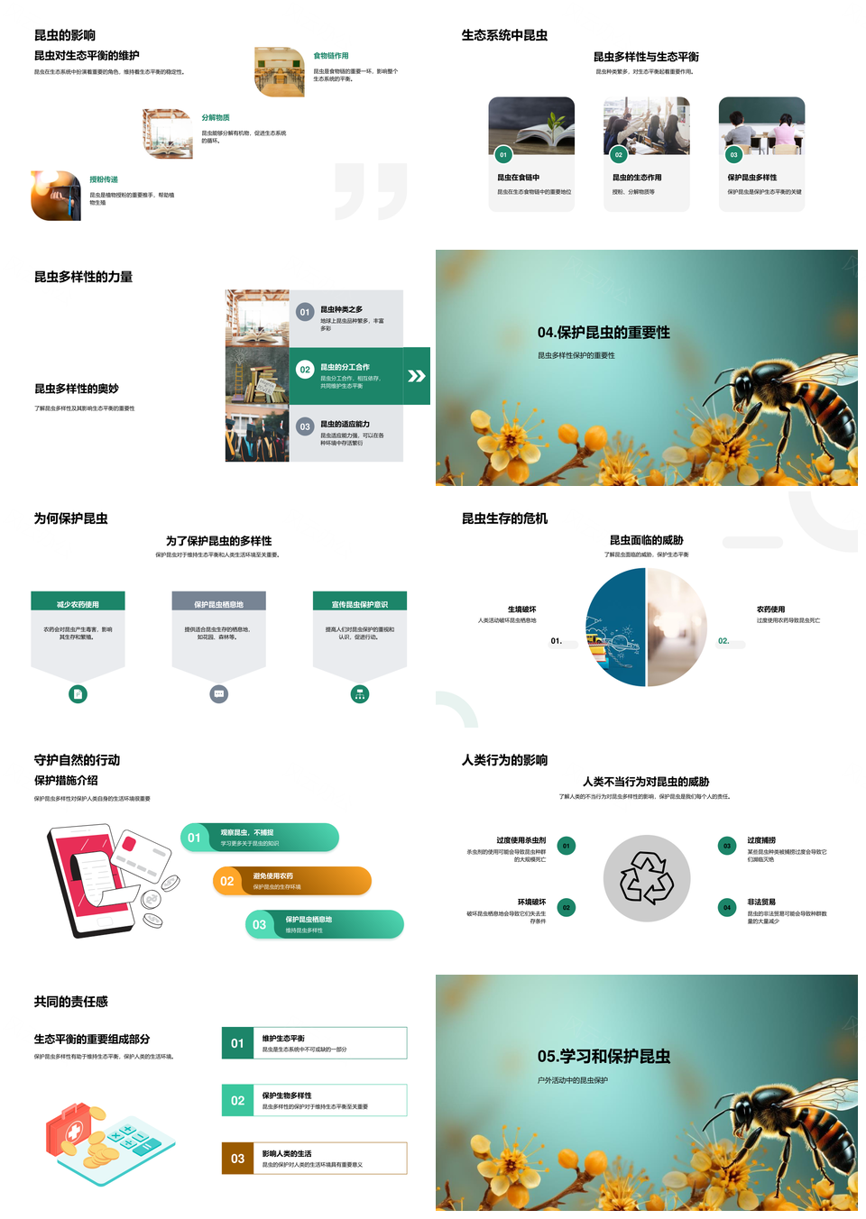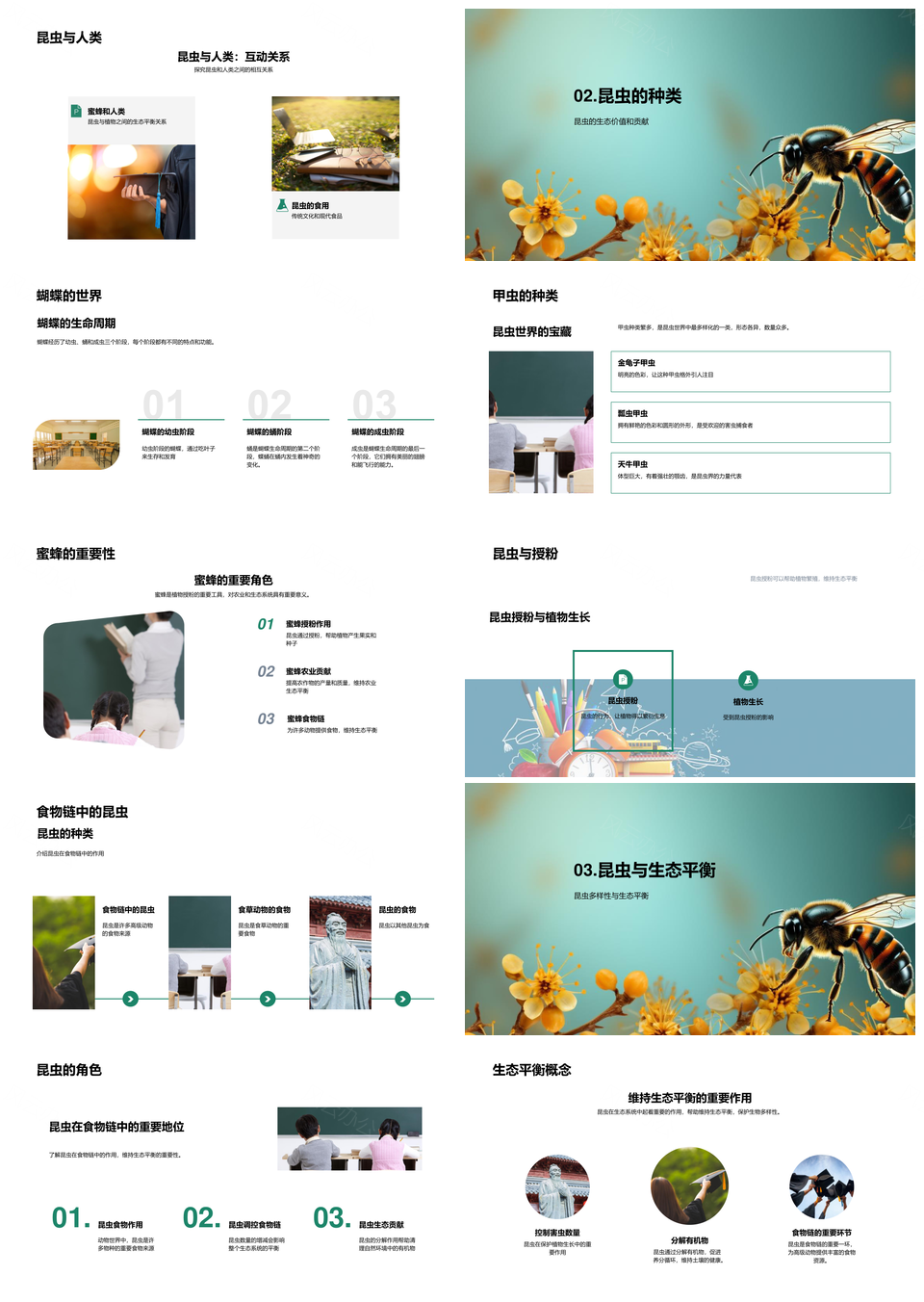 风云办公提供的昆虫多样守护生态平衡授粉共生PPT模板,下载格式为pptx,一共33页,作品中文字及图均可以修改和编辑,图片更改请在作品中右键图片并更换,文字修改请直接点击文字进行修改。