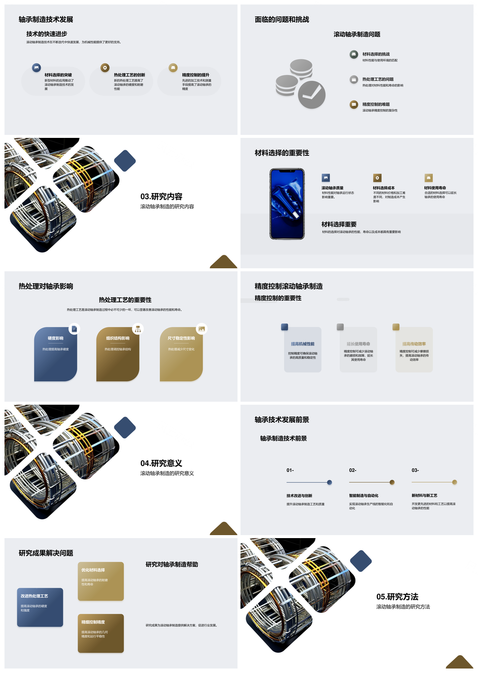 风云办公提供的滚动轴承制造工艺研究挑战与前景PPT模板,下载格式为pptx,一共21页,作品中文字及图均可以修改和编辑,图片更改请在作品中右键图片并更换,文字修改请直接点击文字进行修改。