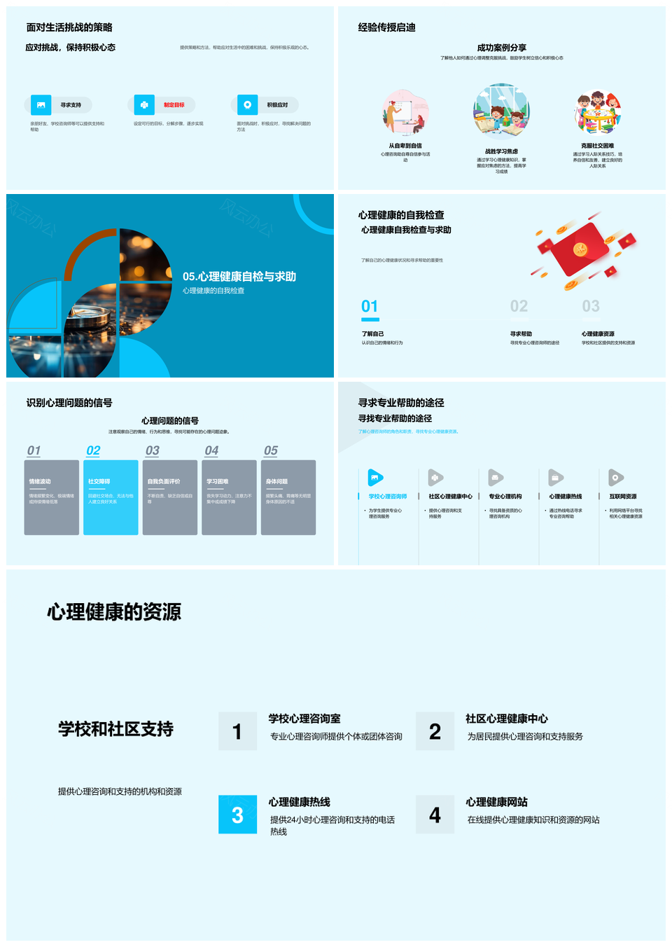 风云办公提供的青少年心理健康成长导航指南PPT模板,下载格式为pptx,一共25页,作品中文字及图均可以修改和编辑,图片更改请在作品中右键图片并更换,文字修改请直接点击文字进行修改。