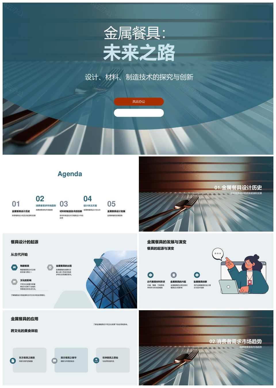 2025金属餐具创新设计与消费文化趋势PPT模板推荐
