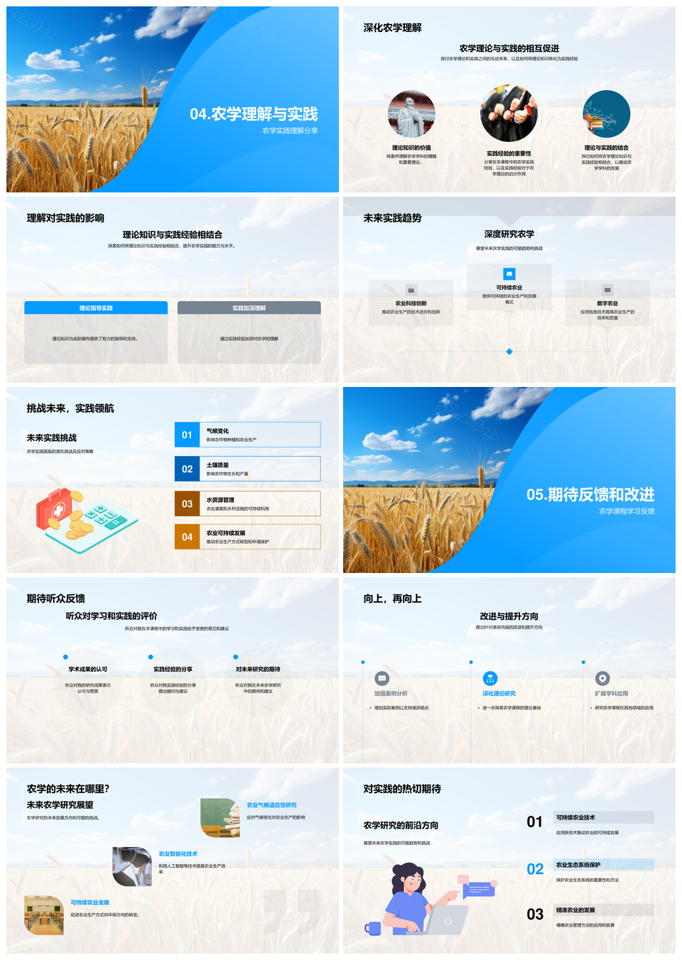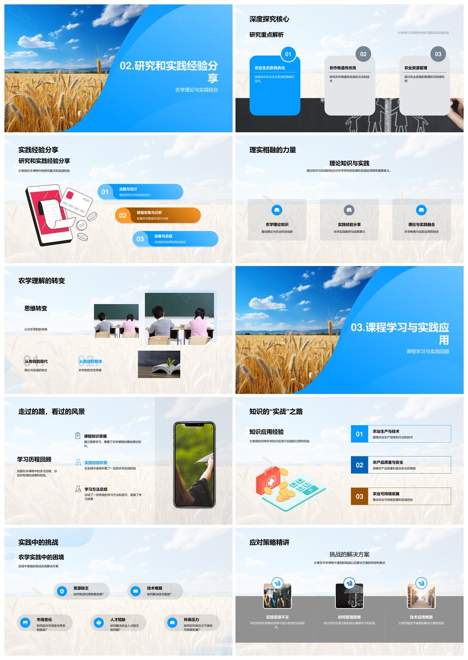 这是一张农学课程理论实践与小麦田研究PPT模板,包含农学课程、理论实践、小麦田研究等主题内容,也可用作农学课程理论实践、农学课程理论、农学课程实践、课程理论实践、理论实践小麦田、实践小麦田研究、农学课程、课程理论、理论实践、实践小麦田、小麦田研究、农学理论、课程实践、农学实践、农学研究等PPT场景使用。 风云办公提供的农学课程理论实践与小麦田研究PPT模板,下载格式为pptx,一共28页,作品中文字及图均可以修改和编辑,图片更改请在作品中右键图片并更换,文字修改请直接点击文字进行修改。