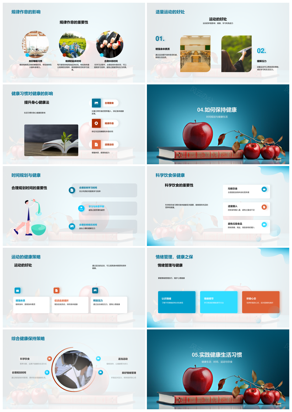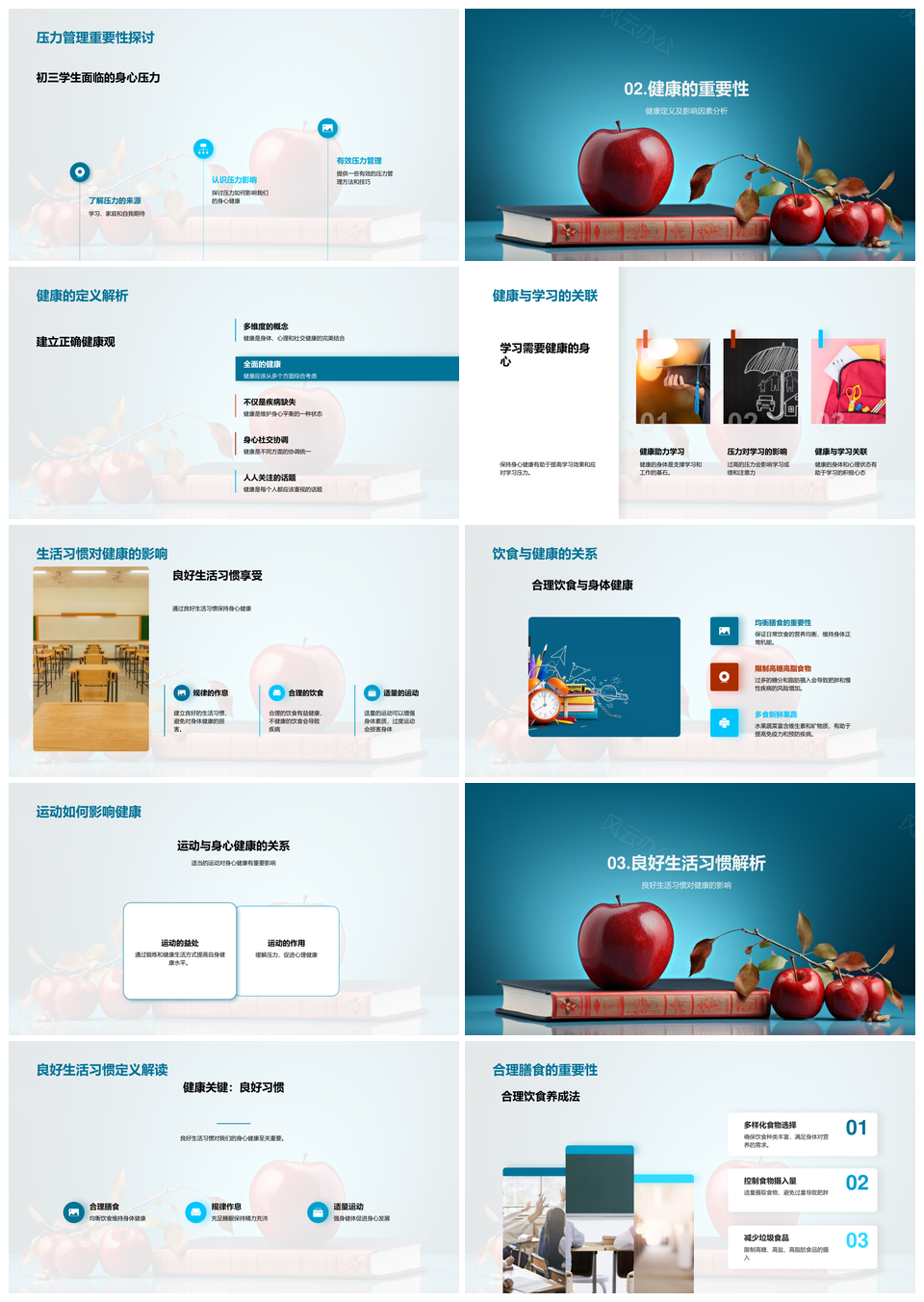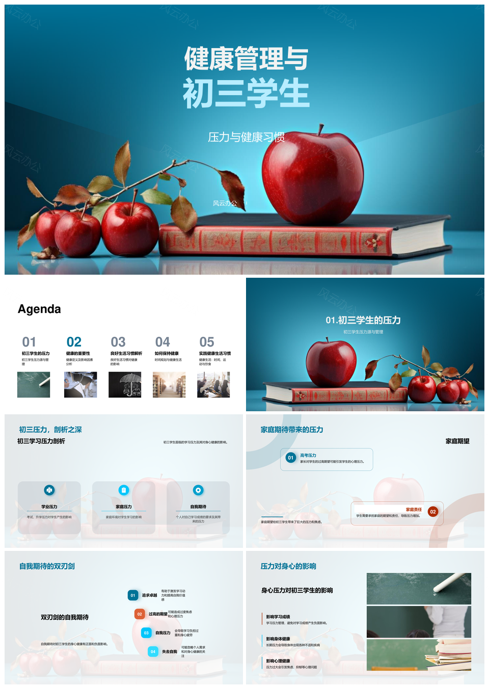 风云办公提供的初三学生健康管理与压力习惯调节PPT模板,下载格式为pptx,一共33页,作品中文字及图均可以修改和编辑,图片更改请在作品中右键图片并更换,文字修改请直接点击文字进行修改。