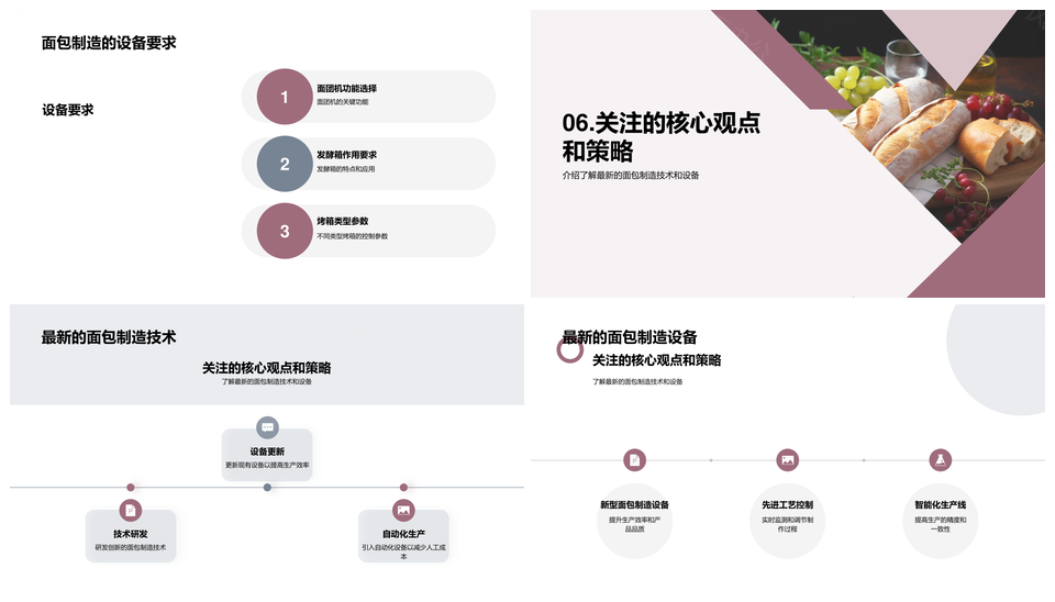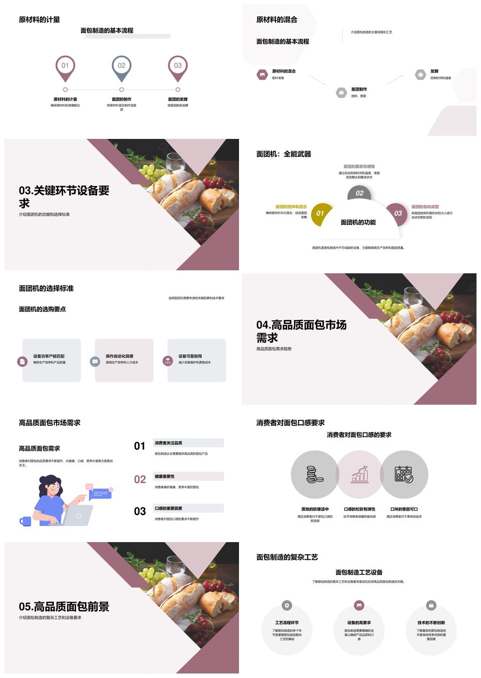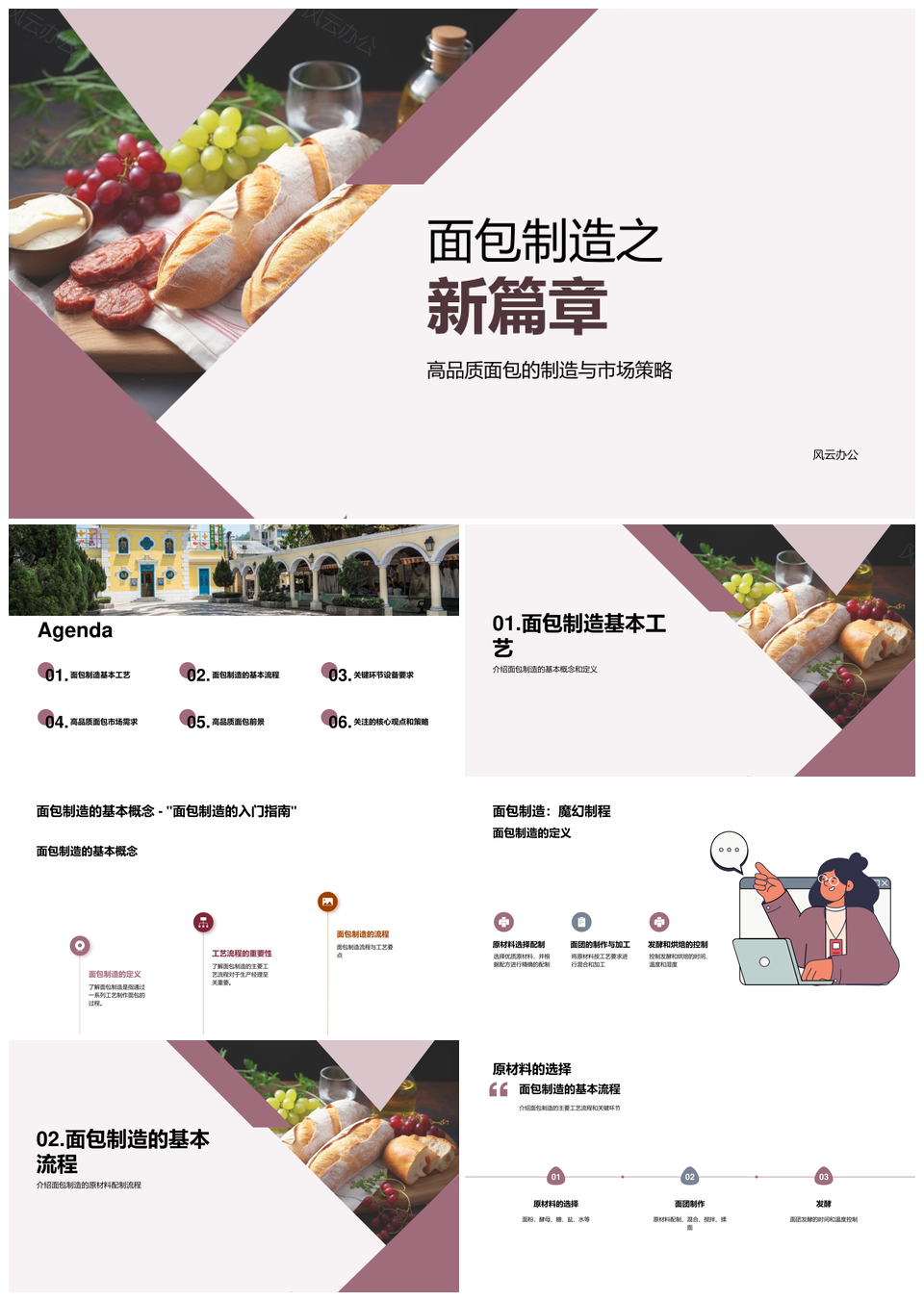 这是一张面包制造流程关键环节与原材料配制发酵烘焙包装PPT模板,包含面包制造、流程、关键环节、原材料、配制、发酵、烘焙、包装等主题内容,也可用作原材料配制发酵烘焙、配制发酵烘焙包装、原材料配制发酵、制造流程关键环节、配制发酵烘焙、发酵烘焙包装、面包制造流程、流程关键环节、关键环节原材料配制、原材料发酵烘焙、面包制造、制造流程、关键环节、原材料配制、发酵烘焙等PPT场景使用。 风云办公提供的面包制造流程关键环节与原材料配制发酵烘焙包装PPT模板,下载格式为pptx,一共22页,作品中文字及图均可以修改和编辑,图片更改请在作品中右键图片并更换,文字修改请直接点击文字进行修改。