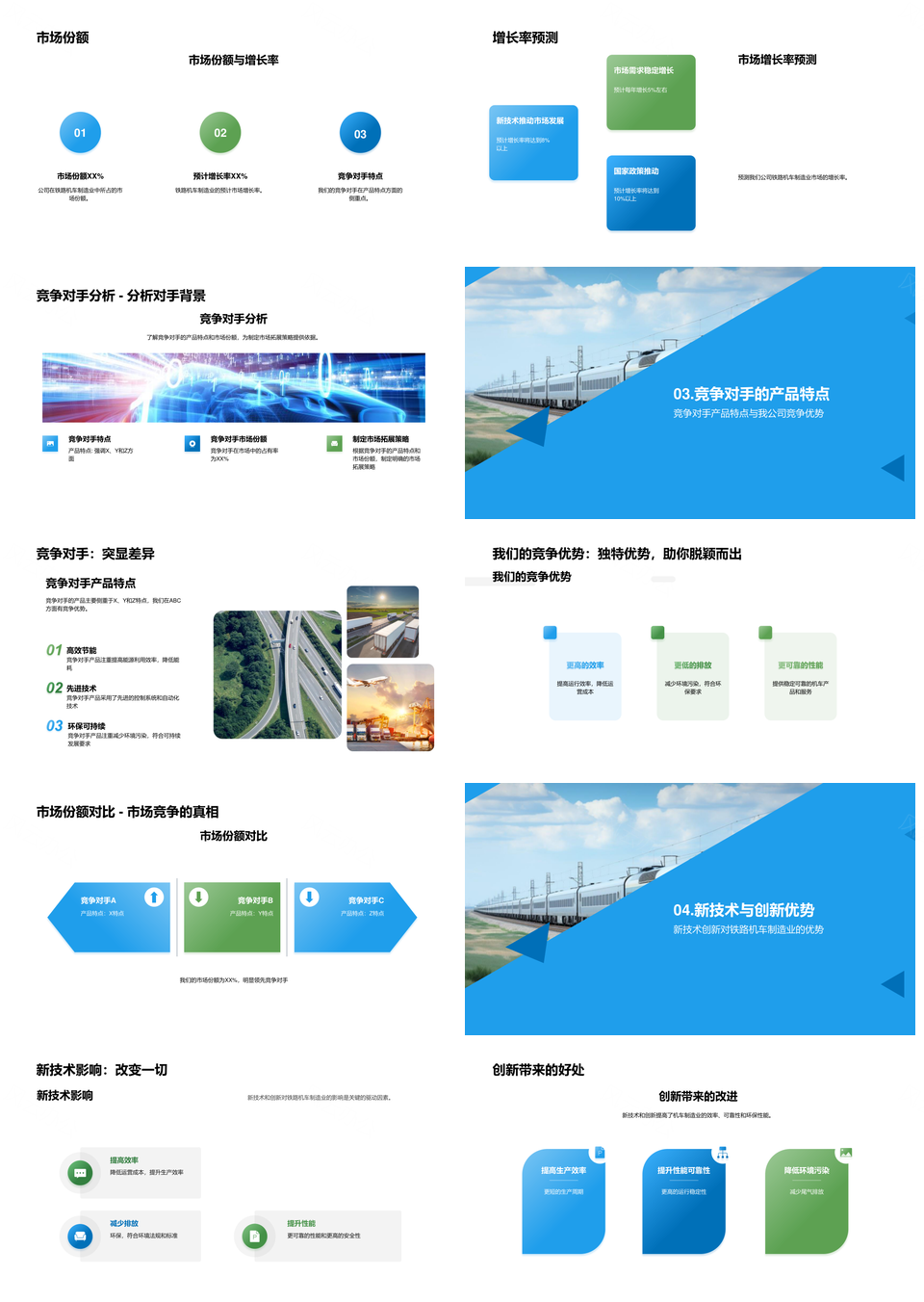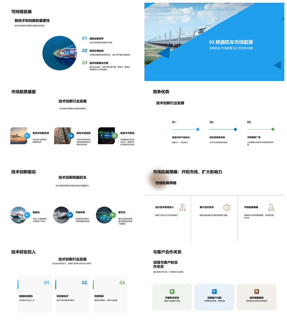 风云办公提供的铁路机车制造发展史与市场前景PPT模板,下载格式为pptx,一共26页,作品中文字及图均可以修改和编辑,图片更改请在作品中右键图片并更换,文字修改请直接点击文字进行修改。