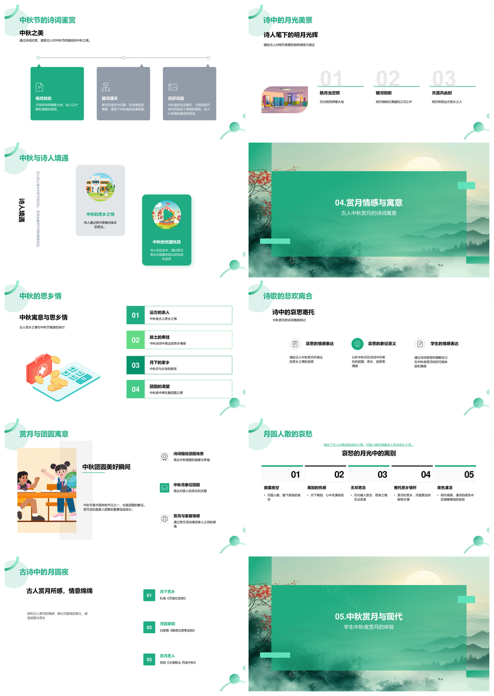 2025中秋诗词赏月思乡情感解析PPT模板推荐
