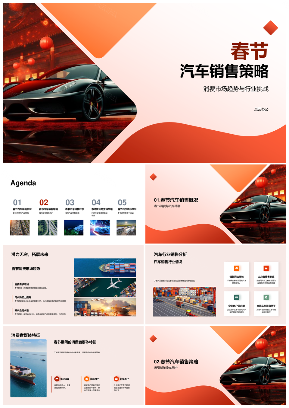 这是一张春节汽车销售策略应对消费趋势行业挑战PPT模板,包含春节、汽车销售策略、消费趋势、行业挑战等主题内容,也可用作春节汽车销售策略应对、汽车销售策略应对消费趋势、销售策略应对消费趋势行业挑战、春节应对消费趋势行业挑战、汽车应对消费趋势行业挑战、销售策略消费趋势行业挑战、春节汽车应对行业挑战、汽车销售策略行业挑战、消费趋势行业挑战应对、春节汽车销售策略、汽车销售策略应对、销售策略应对消费趋势、应对消费趋势行业挑战、春节汽车消费趋势、销售策略行业挑战等PPT场景使用。 风云办公提供的春节汽车销售策略应对消费趋势行业挑战PPT模板,下载格式为pptx,一共23页,作品中文字及图均可以修改和编辑,图片更改请在作品中右键图片并更换,文字修改请直接点击文字进行修改。