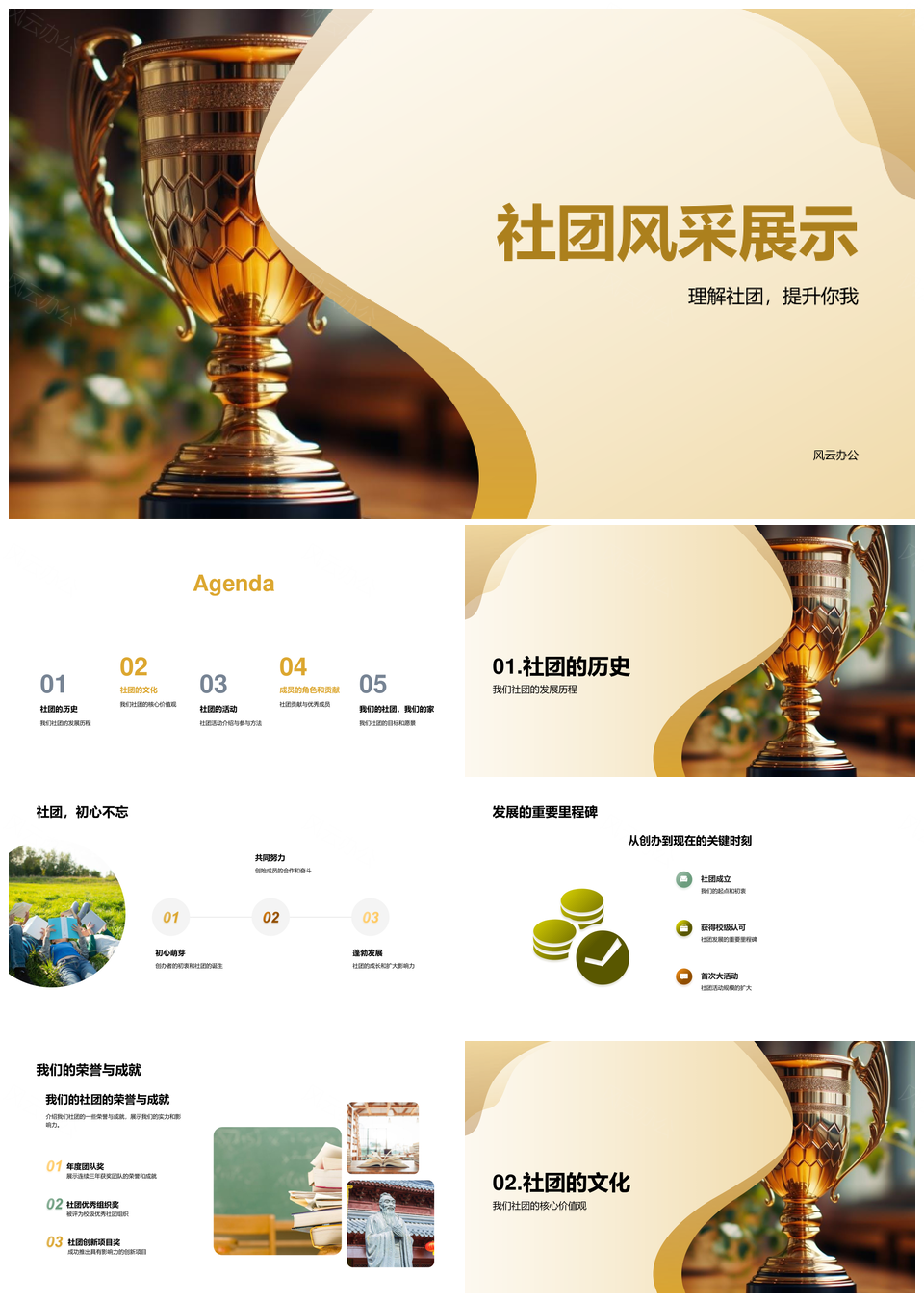 风云办公提供的校社传承践行精神特色活动风采PPT模板,下载格式为pptx,一共23页,作品中文字及图均可以修改和编辑,图片更改请在作品中右键图片并更换,文字修改请直接点击文字进行修改。