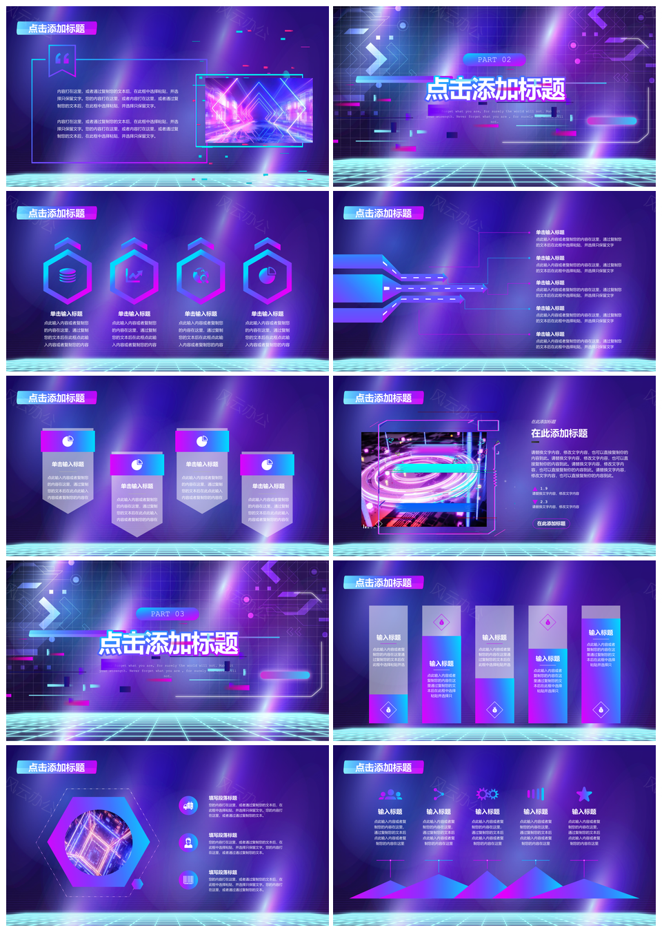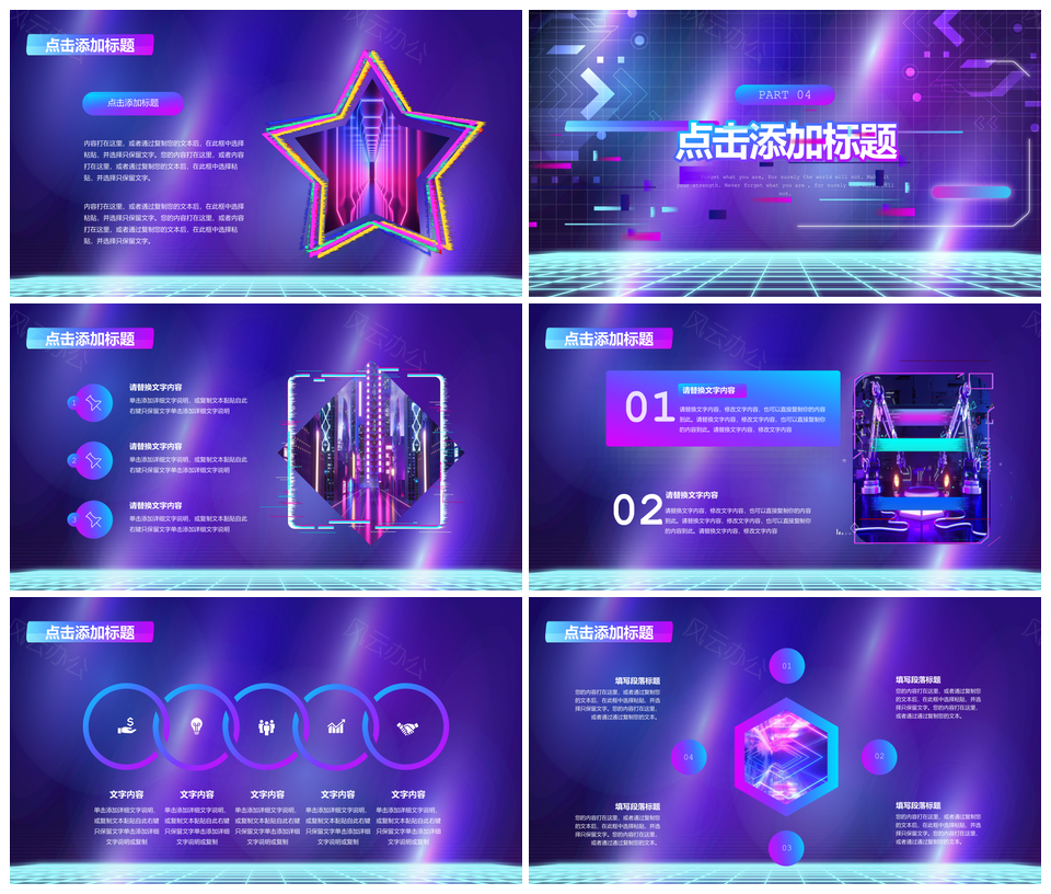 风云办公提供的蓝紫赛博朋克科技风活动策划PPT模板,下载格式为pptx,一共24页,作品中文字及图均可以修改和编辑,图片更改请在作品中右键图片并更换,文字修改请直接点击文字进行修改。