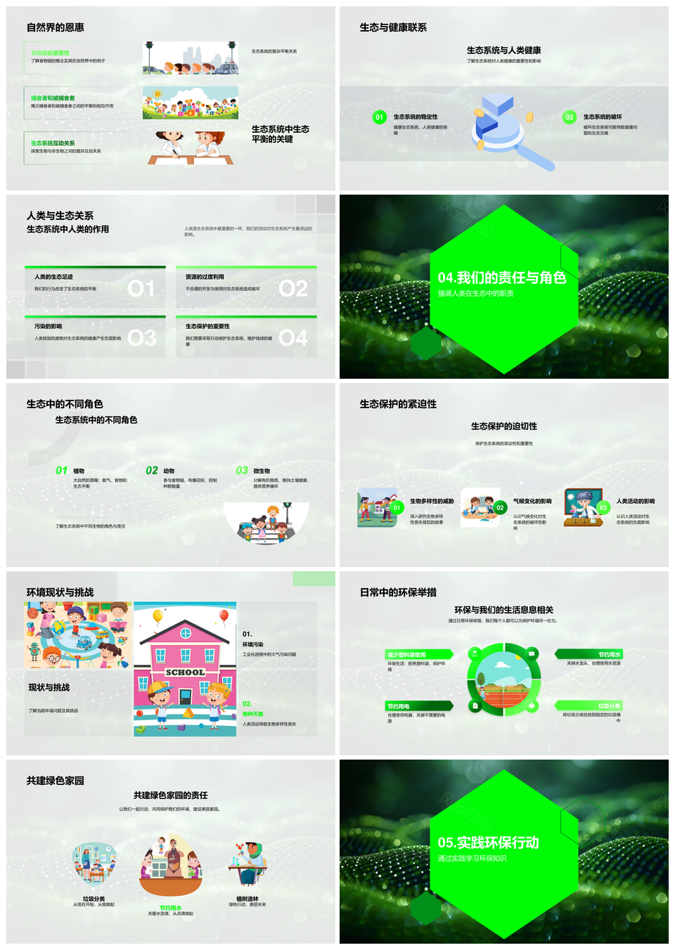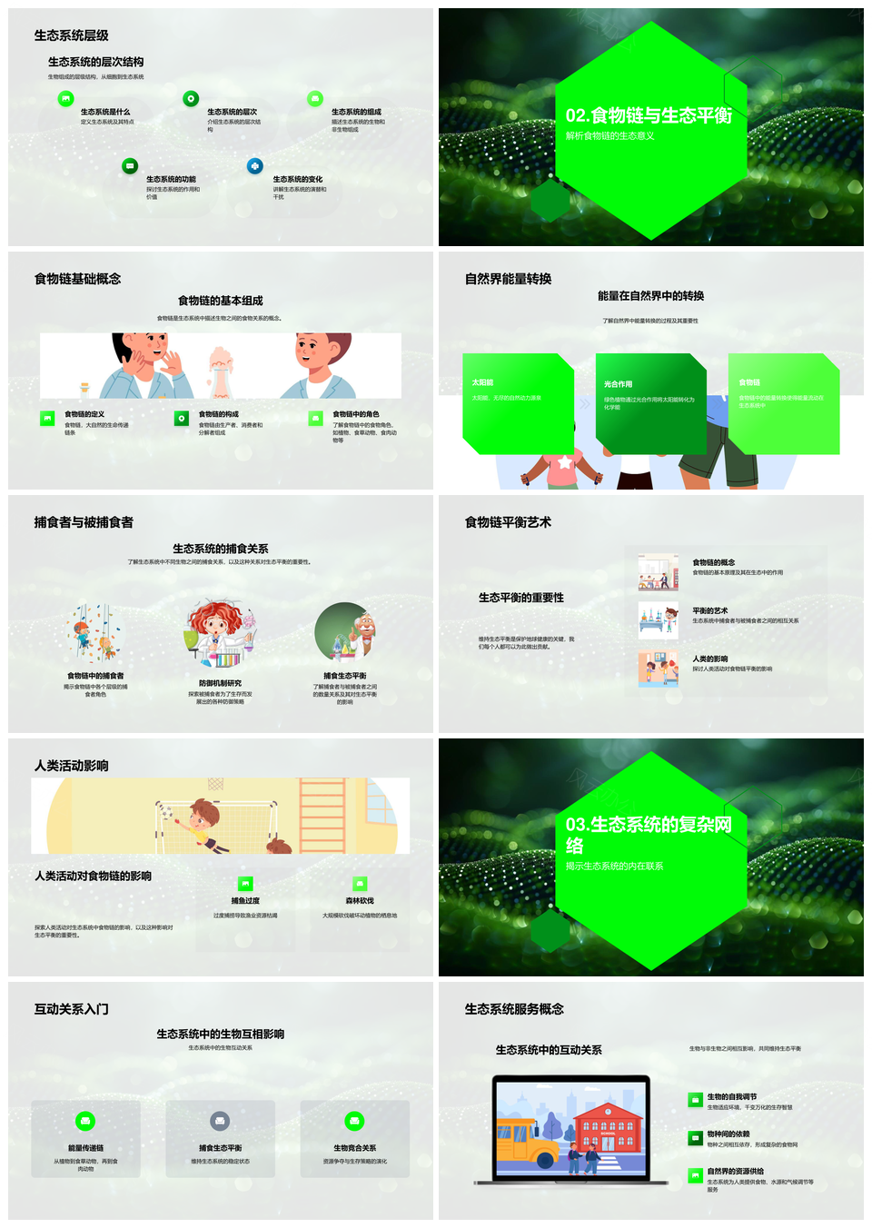 这是一张生态平衡生物多样性环保分类与人类影响PPT模板,包含生态平衡、生物多样性、环保、分类、人类影响等主题内容,也可用作生态平衡生物多样性环保分类、生态平衡生物多样性环保人类影响、生物多样性环保分类人类影响、生态平衡环保分类人类影响、生态平衡生物多样性分类、环保分类人类影响生态平衡、生物多样性环保人类影响、生态平衡环保分类、生物多样性分类人类影响、环保分类生态平衡、生物多样性人类影响、生态平衡环保、环保分类、分类人类影响、生态平衡生物多样性等PPT场景使用。 风云办公提供的生态平衡生物多样性环保分类与人类影响PPT模板,下载格式为pptx,一共33页,作品中文字及图均可以修改和编辑,图片更改请在作品中右键图片并更换,文字修改请直接点击文字进行修改。