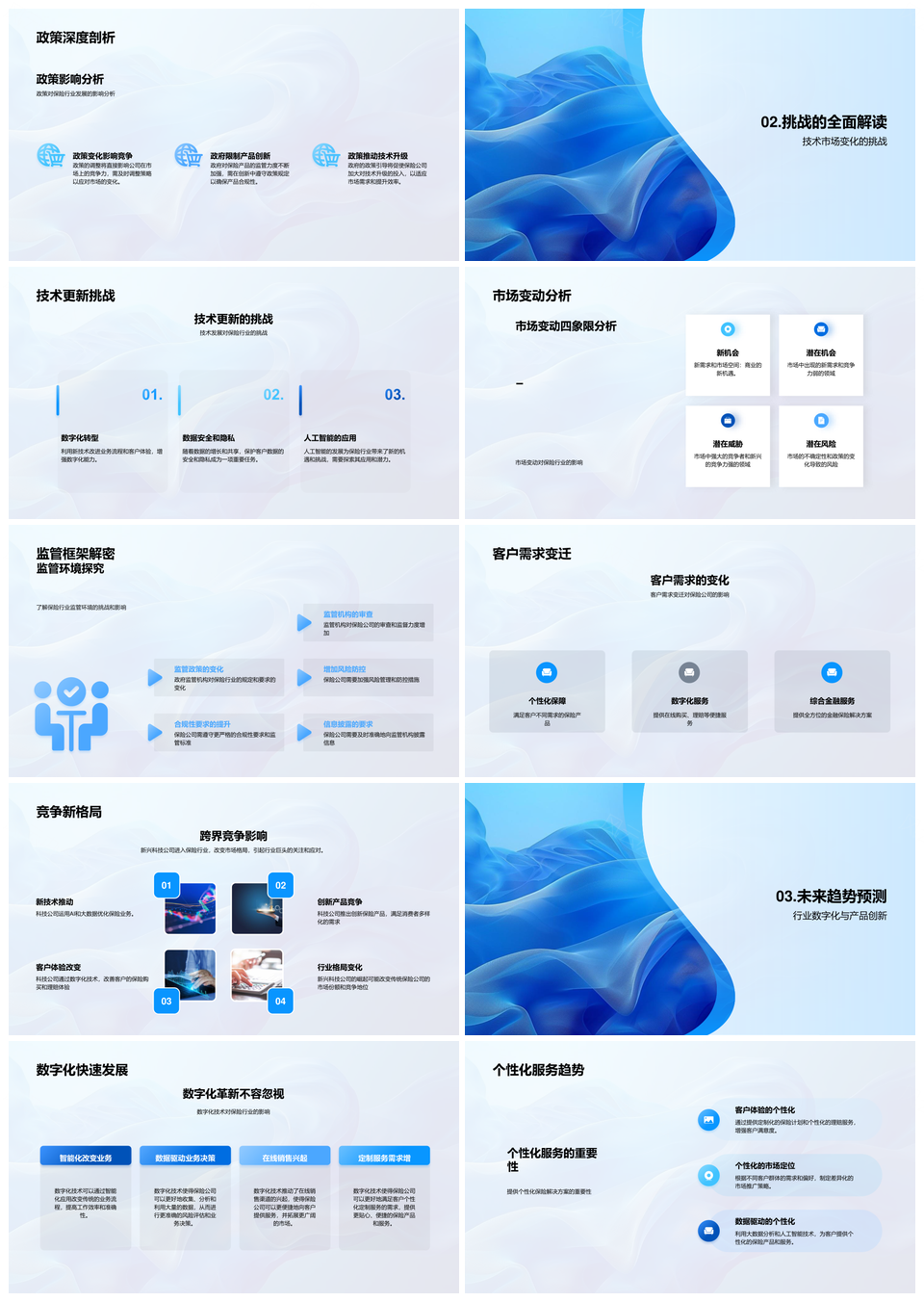 风云办公提供的保险业未来观现状与客户需求变化PPT模板,下载格式为pptx,一共33页,作品中文字及图均可以修改和编辑,图片更改请在作品中右键图片并更换,文字修改请直接点击文字进行修改。