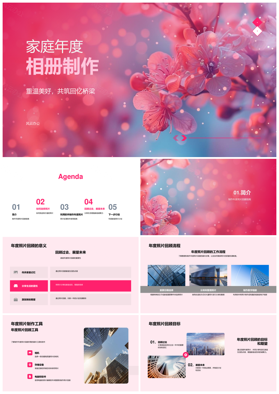 风云办公提供的家庭年度相册制作重温美好凝聚回忆PPT模板,下载格式为pptx,一共28页,作品中文字及图均可以修改和编辑,图片更改请在作品中右键图片并更换,文字修改请直接点击文字进行修改。
