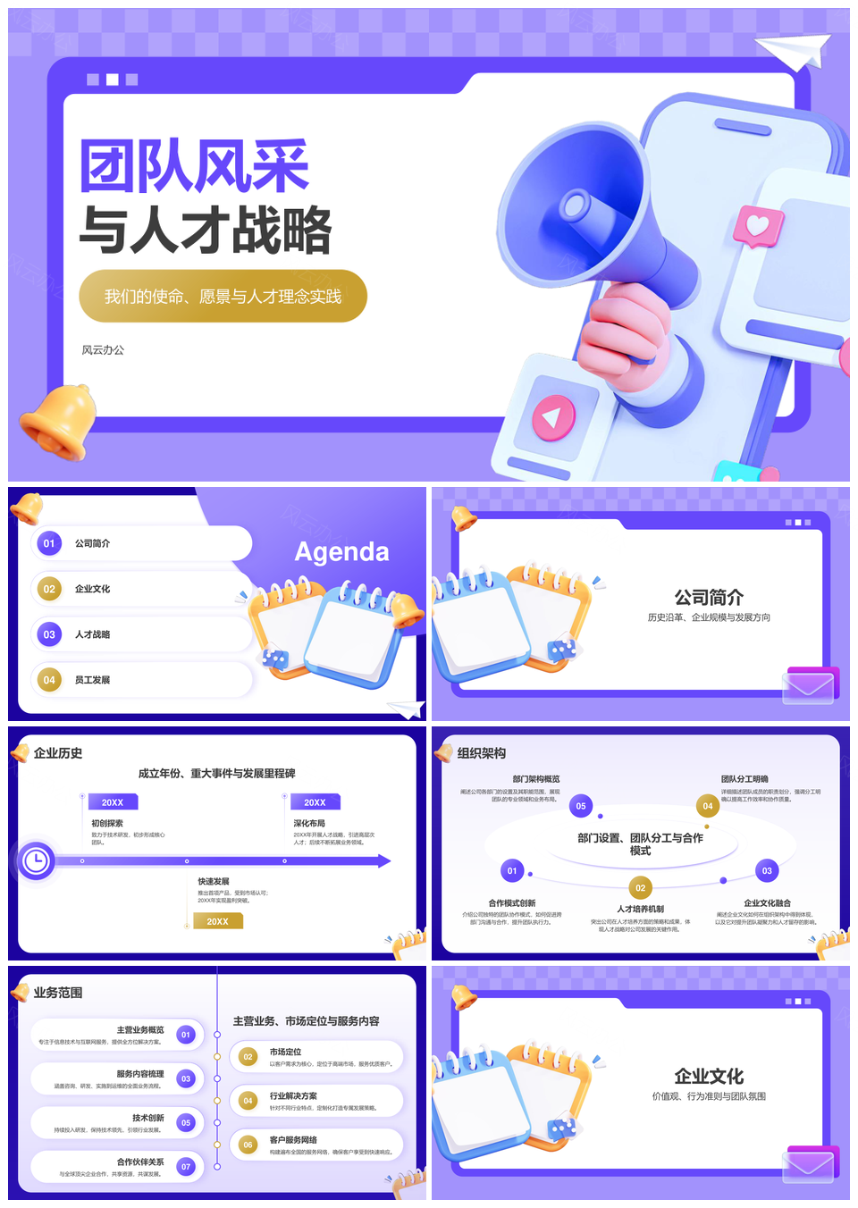 风云办公提供的人才战略团队发展历程成功案例PPT模板,下载格式为pptx,一共18页,作品中文字及图均可以修改和编辑,图片更改请在作品中右键图片并更换,文字修改请直接点击文字进行修改。